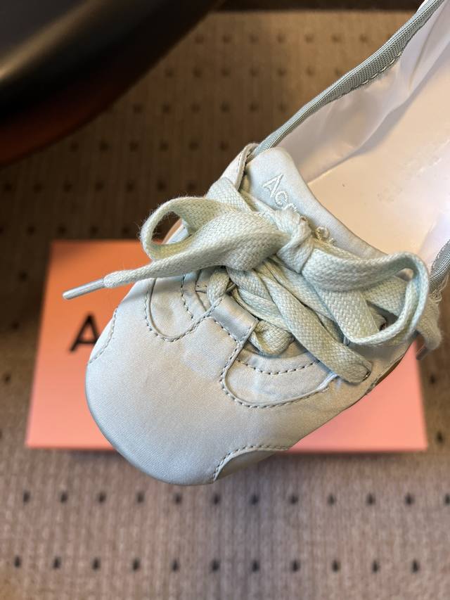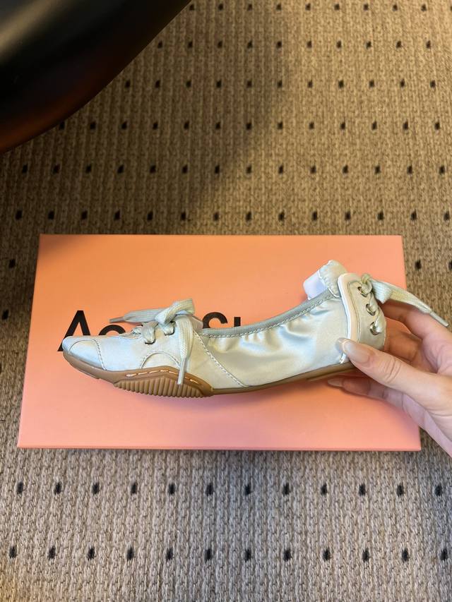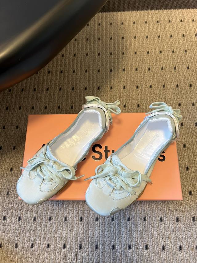 Acne Studio*25S Ballet-Style Bow-Tie Low-Cut Shoes DDD Reimagining the classic ballet flat silhouette, these shoes combine the romantic elegance of ballet with a casual street style. Some styles also incorporate retro distressing and Y2K tech elements. DDD The toe features the classic rounded shape of a ballet flat, with a lace-up design on the front and a decorative strap at the heel. The tongue is printed with the Acne Studios brand logo, and the ultra-thin sole creates a lightweight feel. DDD Material: Cowhide upper Ddd Lining: Sheepskin Ddd Outsole: Rubber outsole Ddd Height Increase: 2cm Ddd Shoe Sizes: 35-40, Size 40 (custom sizes, no returns or exchanges) Ddd Fabric p Leather p DDD
