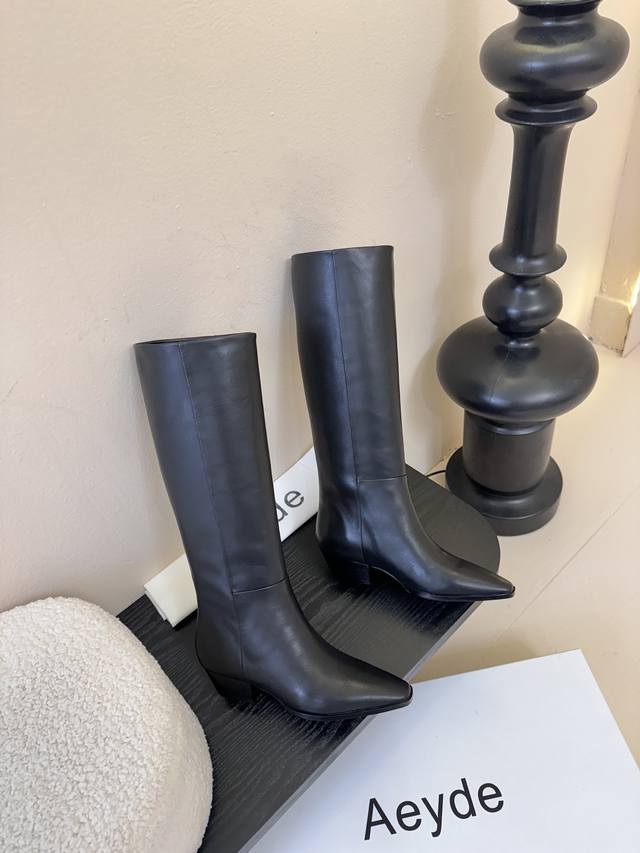 Aeyde New riding boots, super comfortable fit, very flattering to the leg shape, look incredibly cool and stylish in winter, perfect with a coat for a powerful look. Soft boot shaft, extremely comfortable to wear. Made with calfskin upper, sheepskin lining, original leather injection molding sole, 4cm heel. Sizes 35-39, size 40 custom-made.