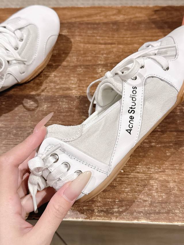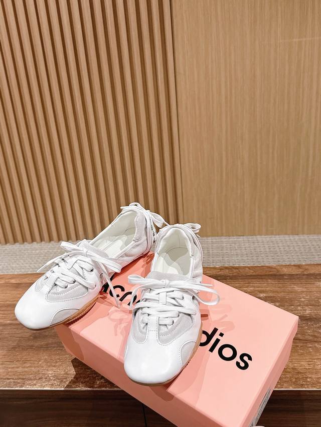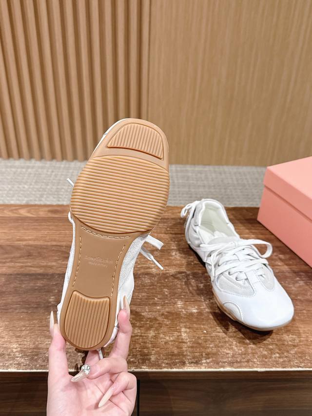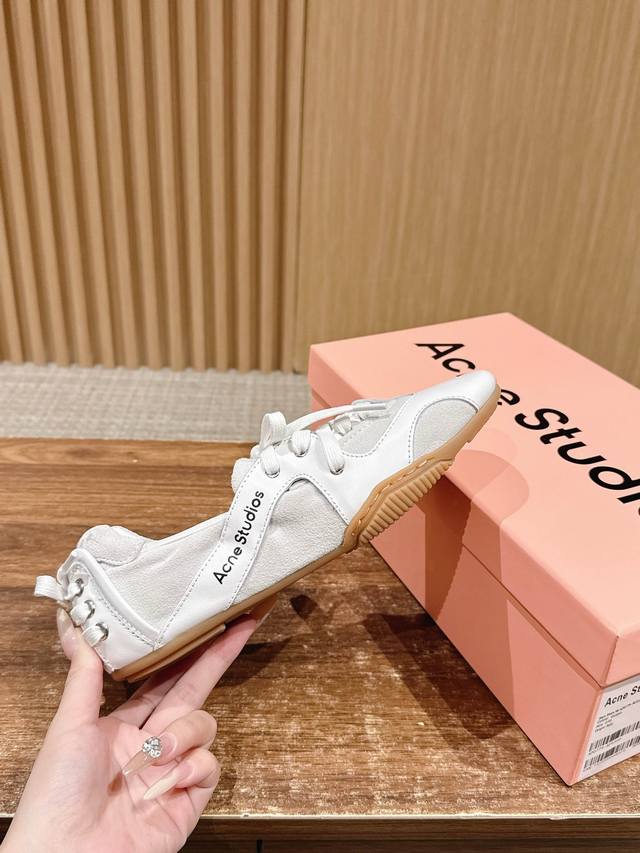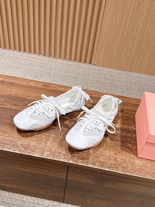Aikeni New Ballet Sneakers DDD This shoe combines sneakers with the currently popular elements of ballet shoes, marking the first time ballet sneakers have been released. DDD The entire shoe is inspired by the pointe shoes worn by actual ballet dancers, featuring a strappy design in the forefoot and crisscrossing straps at the heel. The boat-shaped silhouette and narrow toe box also bear a resemblance to pointe shoes. DDD The upper is made of textured leather, with delicate decorative straps at the heel, and a seamless rubber sole, making it a flat shoe that combines romance and street style. DDD This first release comes in two colorways: beige and light blue. The beige version has a crackled effect, while the light blue version is made of denim with a washed, distressed finish for a retro feel. DDD Size: 35-39 Size 40 is custom-made and non-refundable. DDD