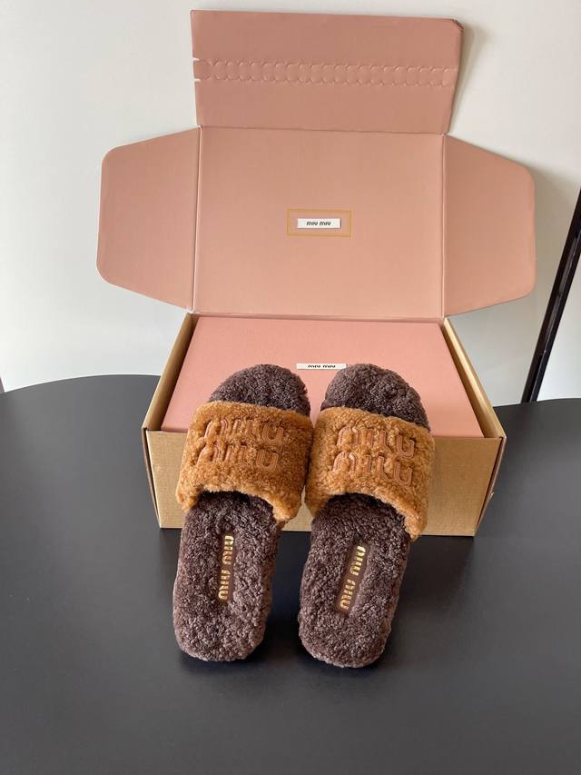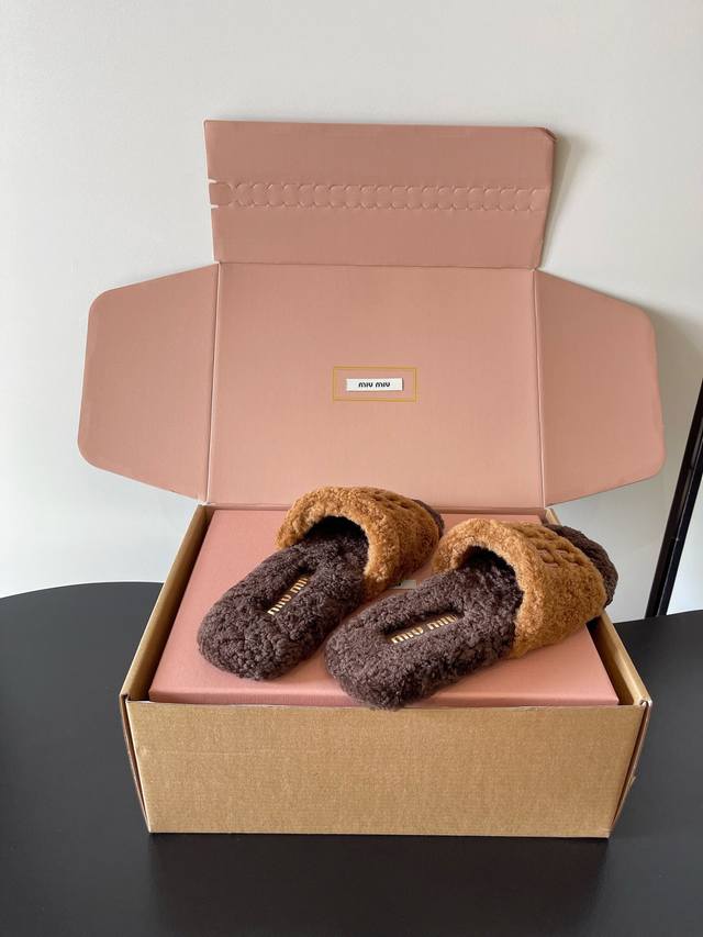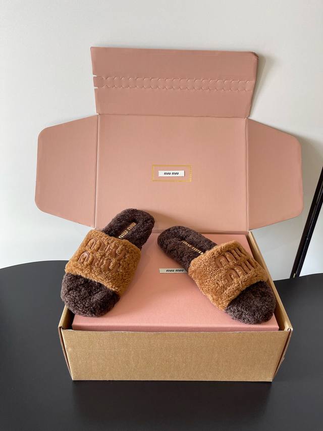 Miumiu's new wool slippers are here! A fashion favorite! The fluffy texture feels like wearing clouds on your feet