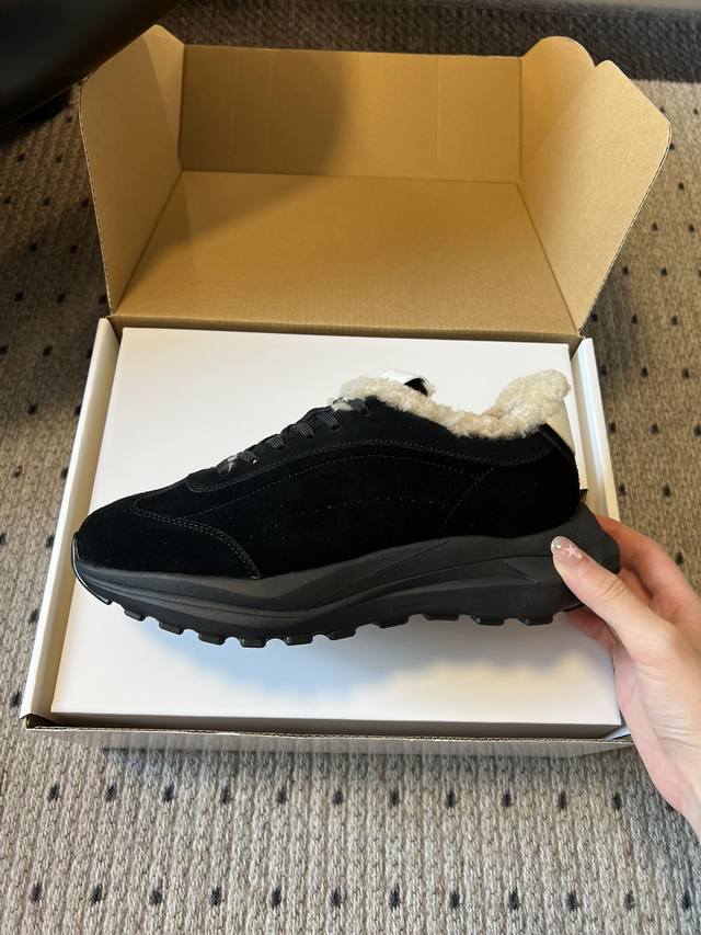 Al* 25Ss New Retro-Style Fleece-Lined Casual Sneakers DDD The inner side of the shoe opening is lined with a soft, skin-friendly fleece lining that effectively locks in warmth during autumn and winter, while adding a soft visual layer to the shoe. The upper is made of suede, with a delicate touch and a matte, high-end feel, enhancing the overall sophistication and retro vibe of the outfit. DDD Continuing the simple silhouette of retro sneakers, paired with a matching lace-up design, it's neat and coordinated; the brand logo on the tongue is clear, strengthening brand recognition, and the platform sole visually elongates the legs. DDD Material: Cow Suede DDD Lining: Sheepskin DDD Outsole: Foam Outsole DDD Height Increase: 5.5cm: 350 DDD Size: Sizes 35-45, 40-45 (custom sizes, no returns or exchanges) DDD