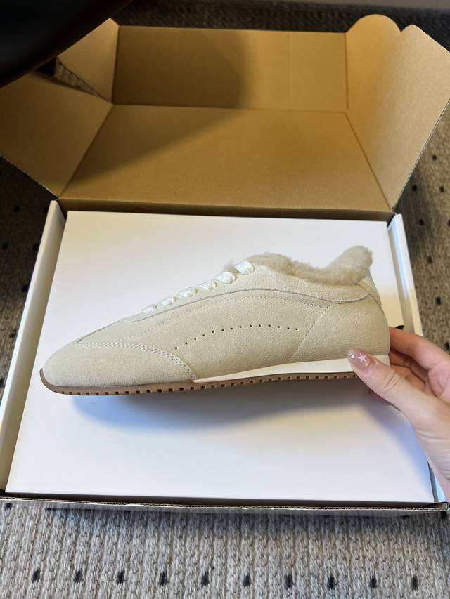 Al*25Ss New Retro Fleece-Lined Casual Sneakers DDD The upper is made of suede-like material, soft to the touch and with a premium feel; a plush lining is added to the inside of the shoe opening, which not only enhances warmth but also adds a gentle visual layer. Available in low-saturation earth tones such as off-white, light brown, and dark brown, simple and versatile, suitable for various autumn and winter outfits. DDD Continuing the silhouette of retro sneakers, paired with a white lace-up design, it weakens the sporty feel while strengthening the casual and relaxed atmosphere, and the brand logo on the tongue makes the overall look more recognizable. DDD Material: Cow suede DDD Lining: Wool DDD Outsole: Rubber outsole DDD Height increase: 4Cm: 280 DDD Size: 35-45, 40-45 sizes are custom-made and non-refundable DDD