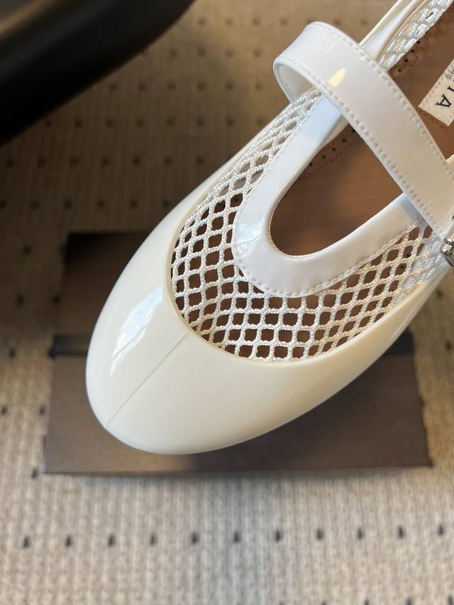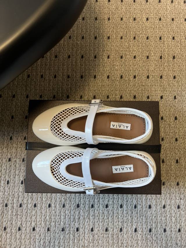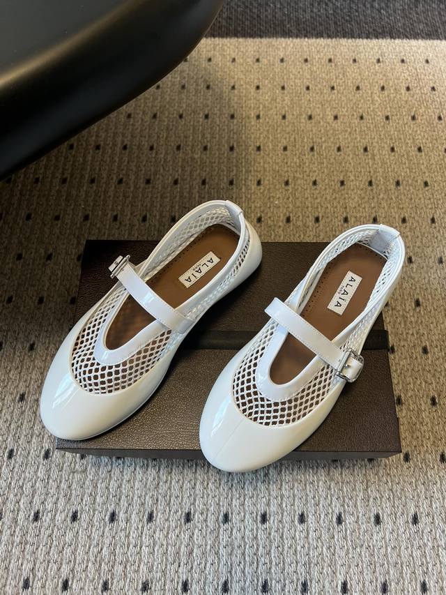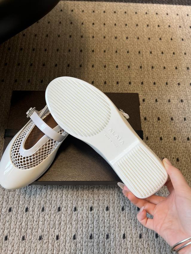 Ala*26Ss Flat Mary Jane Fishnet Shoes (DDD) These shoes feature a combination of mesh fabric and glossy patent leather. The mesh provides a light and airy look, while the patent leather adds a touch of sophistication. The rubber sole ensures both comfort and durability. DDD Continuing the classic Mary Jane silhouette with its single buckle and round toe, these shoes incorporate a low-heel design reminiscent of ballet flats, retaining a retro charm while meeting the practicality needs of everyday wear. The metal buckle allows for adjustable tightness, and the shoe's lines conform to the foot shape. DDD Upper: Original custom cowhide mesh Ddd Lining: Sheepskin Ddd Outsole: Original molded outsole Ddd Height increase: 2cm Ddd Size: 35-41, sizes 40 and 41 are custom-made and non-refundable Ddd DDD