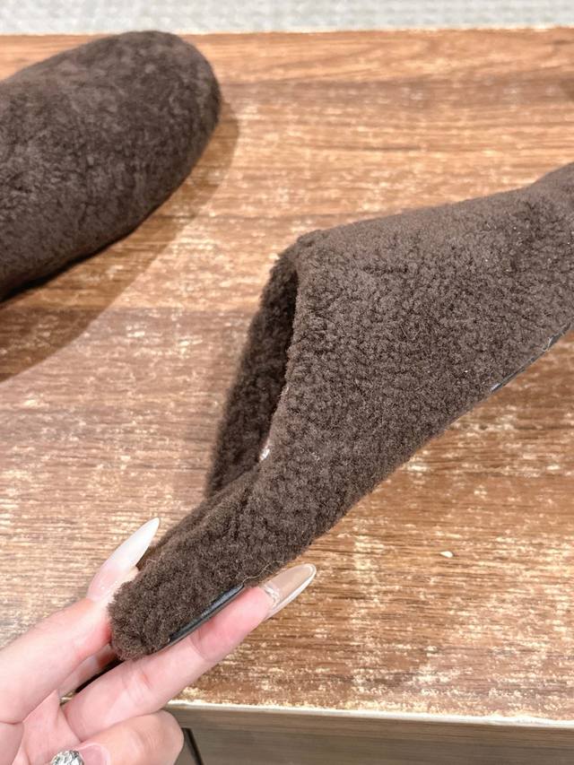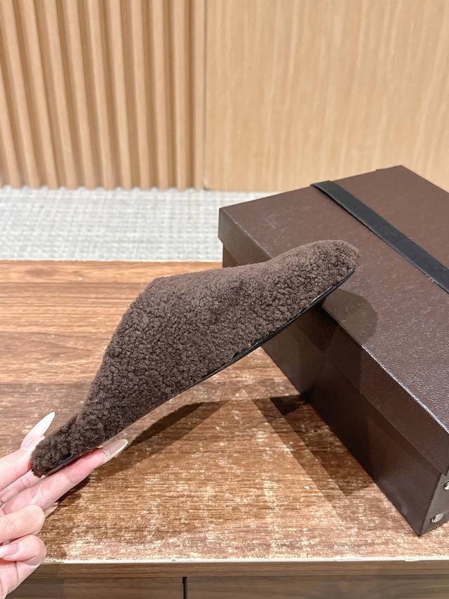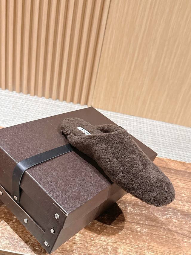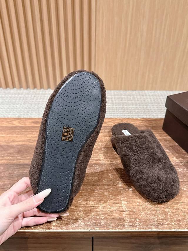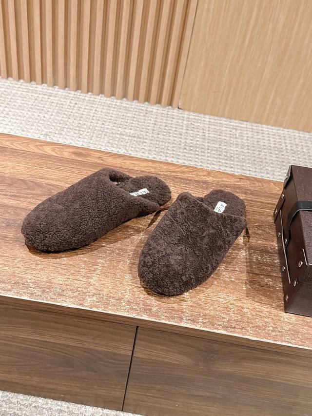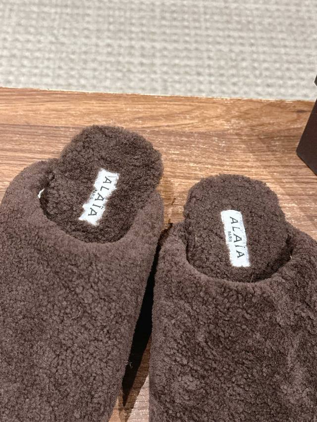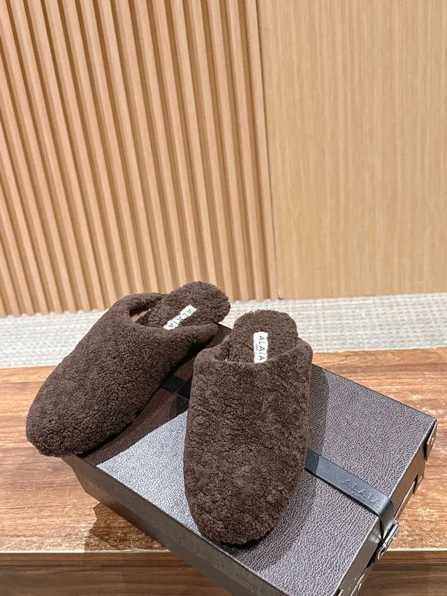 Alaa Autumn/Winter New Style Furry Mule Slippers DDD Made with imported lamb wool, these slippers are fluffy, soft, and highly warm. The lining is often lined with fine leather, balancing comfort and a luxurious feel. The round-toe mule slippers are minimalist, featuring only the brand label for embellishment. They are versatile and come in low-saturation colors, exuding understated elegance. DDD The brand's signature small label, combined with the simple design, continues Alaa's signature "minimalist luxury" aesthetic. The shoe shape is highly forgiving and provides a comfortable fit. They can be worn as lounge slippers or casual "lazy shoes" for short outings, offering both warmth and style