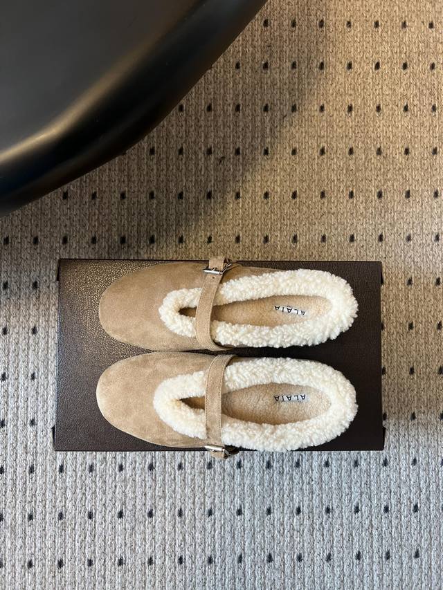 Alai* 25Ss Autumn/Winter New Fleece-Lined Birkenstock-Style Mary Jane Shoes DDD Made with suede upper and lamb's wool lining for excellent warmth; the single-strap design with metal buckle enhances the texture, combining retro and sophisticated feel. The round toe is forgiving, and the flat sole ensures comfort. The plush edges at the shoe opening are soft and cute, with a style that lies between casual and retro. DDD Available in multiple colors including beige, dark brown, chocolate brown, and black, suitable for different styles of outfits, and the earthy tones perfectly capture the autumn/winter atmosphere. DDD Upper: Denim Ddd Lining: Wool Ddd Outsole: TPU Outsole Ddd Sizes: 35-41 Ddd DDD