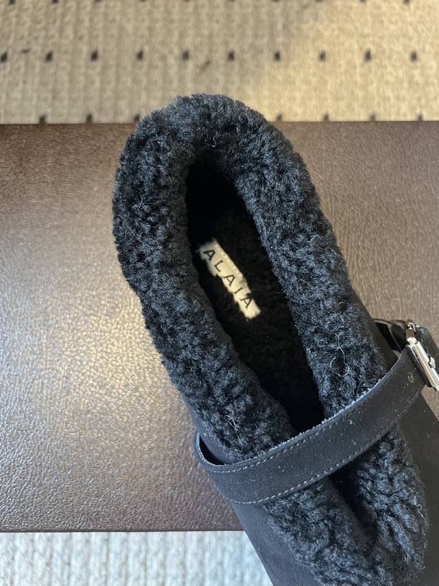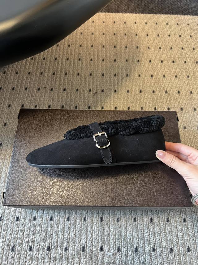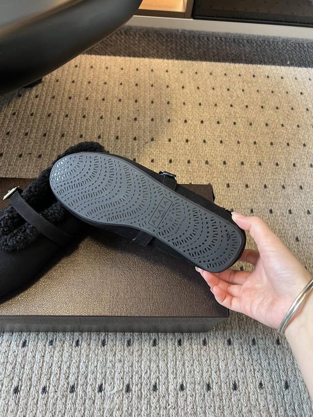 Alai* 25Ss Autumn/Winter New Fleece-Lined Birkenstock-Style Mary Jane Shoes DDD Made with suede upper and lamb's wool lining for excellent warmth; the single-strap design with metal buckle enhances the texture, combining retro and sophisticated feel. The round toe is forgiving, and the flat sole ensures comfort. The plush edges at the shoe opening are soft and cute, with a style that lies between casual and retro. DDD Available in multiple colors including beige, dark brown, chocolate brown, and black, suitable for different styles of outfits, and the earthy tones perfectly capture the autumn/winter atmosphere. DDD Upper: Denim Ddd Lining: Wool Ddd Outsole: TPU Outsole Ddd Sizes: 35-41 Ddd DDD