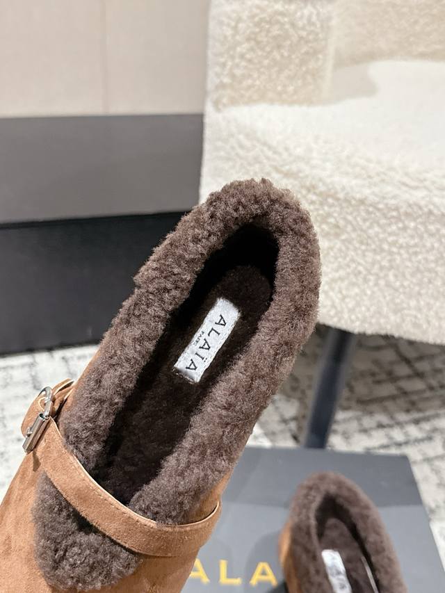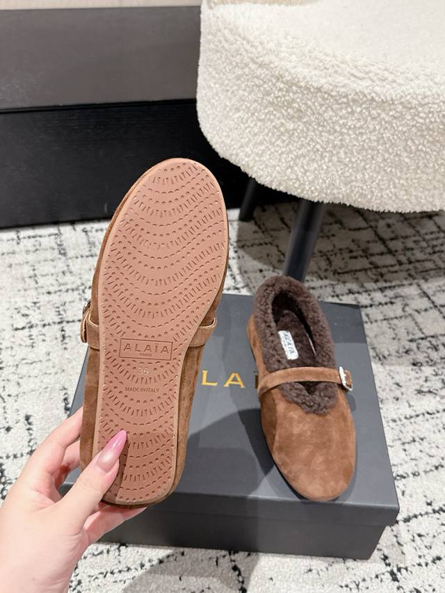 Alaia 2025 Autumn/Winter New Lambswool Shoes DDD Mary Jane shoes in wool are here! They perfectly capture a fashionable look. Every color is sophisticated. The buckle design is retro yet chic. The soft, warm wool lining adds a touch of luxury, easily brightening up your autumn/winter outfits. DDD Upper: Imported lambswool DDD Lining: Imported wool DDD Outsole: Zp replica outsole DDD Sizes: 35-39, 40, 41, 42 (fixed) DDD