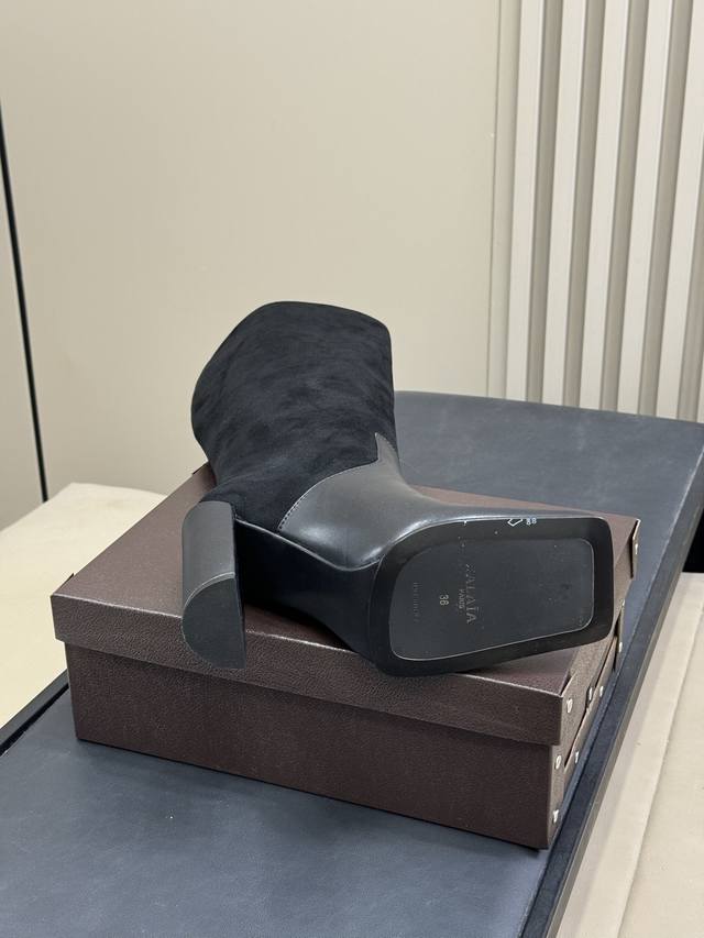 Alaia 2025 Autumn/Winter New Square Toe Chunky Heel Ankle Boots/High Boots (Retail Price) These shoes instantly exude confidence and style. The combination is stunning, with visible gloss on the leather, a perfect fit, and a balance of comfort and shaping. They look great no matter how you wear them, and they go with everything! Upper: Calfskin Outsole: Italian Imported Genuine Leather Injection Molded Outsole Size: 35-41 40 41 (Custom Made)