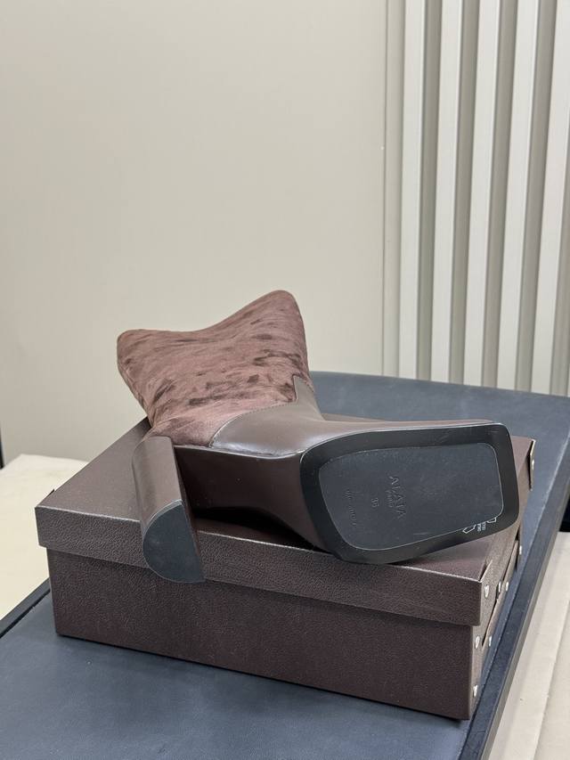 Alaia 2025 Autumn/Winter New Square Toe Chunky Heel Ankle Boots/High Boots (Retail Price) These shoes instantly exude confidence and style. The combination is stunning, with visible gloss on the leather, a perfect fit, and a comfortable yet supportive look. They look great with everything and always look sophisticated! Upper: Calfskin Outsole: Italian Imported Genuine Leather Injection Molded Outsole Size: 35-41 (40/41 Custom Made)