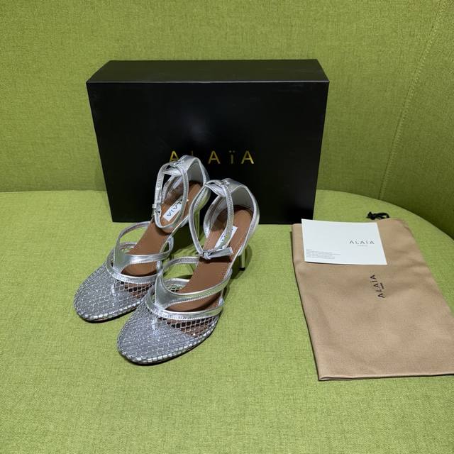 Alaia 2025 Spring/Summer New Flip-Flops Sandals with a fishnet and leather desig