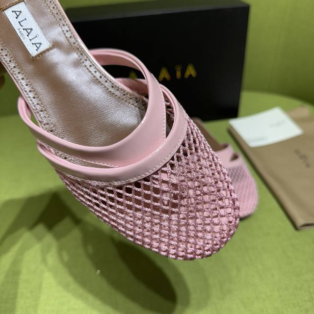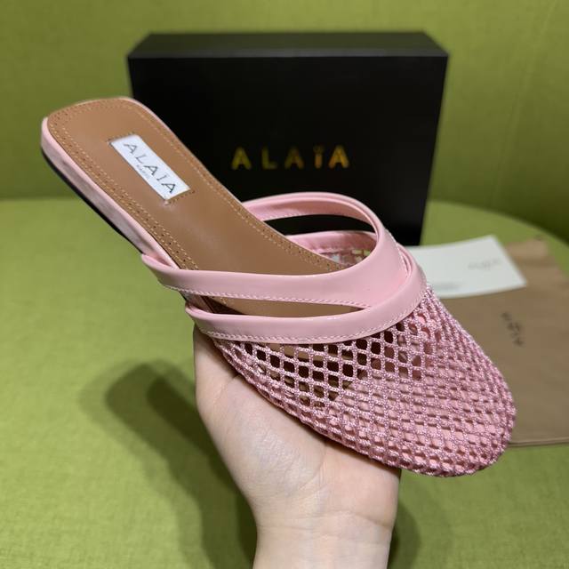 Alaia 2025 Spring/Summer New Flip-Flops Sandals with a fishnet and leather desig