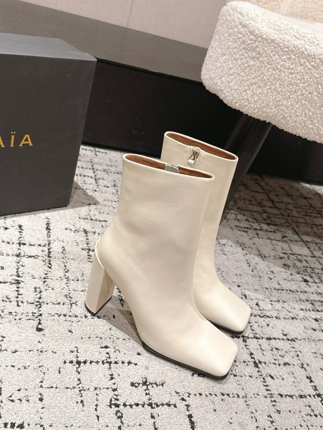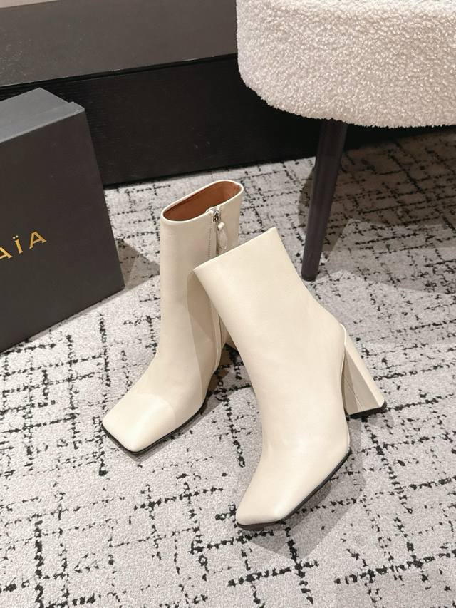 Alaia 25 Alaia Autumn/Winter New Square Toe High-Heeled Boots DDD A pair of comfortable and stylish boots with a relaxed feel, super comfortable on the feet, unique and full of personality and fashion sense DDD Upper: Calfskin DDD Insole: Sheepskin DDD Outsole: Italian injection-molded genuine leather DDD Heel height: 9cm DDD Sizes: 35-39 40 41 Custom made DDD