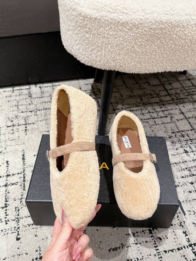 Alaia 25 Autumn/Winter New Style Suede Mary Jane Ballet Shoes DDD Made with suede upper and sheepskin lining for excellent warmth; the single-strap design with metal buckle enhances the texture, combining retro and refined styles. The round toe is forgiving, the flat sole ensures comfort, and the plush edges at the opening are soft and cute, with a style between casual and retro. DDD Upper: Suede upper DDD Lining: Sheepskin DDD Outsole: Original rubber non-slip outsole DDD Size: #35-42 40.41 42 (Custom sizes are non-refundable and non-exchangeable) DDD