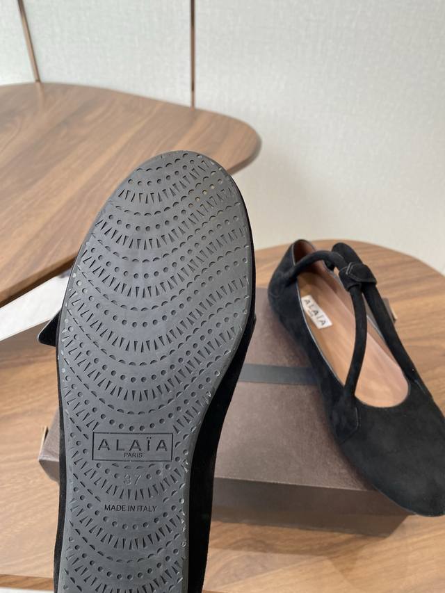 Alaia 25Ss Spring/Summer Ballet Flats. French high-end couture brand Azzedine Alaia: Fashion's Last Craftsman. Founded in 1979, Alaia specializes in stylish women's shoes that are full of fashion. Enjoying a high reputation in the Paris fashion world and around the world, Victoria Beckham, Michelle Obama, Lady Gaga, and Madonna are all admirers and number one fans of Alaia. Upper: Original sheepskin. Insole: Sheepskin. Sole: Rubber. Sizes: #35-42, 40, 41, 42. Custom-made, non-refundable.