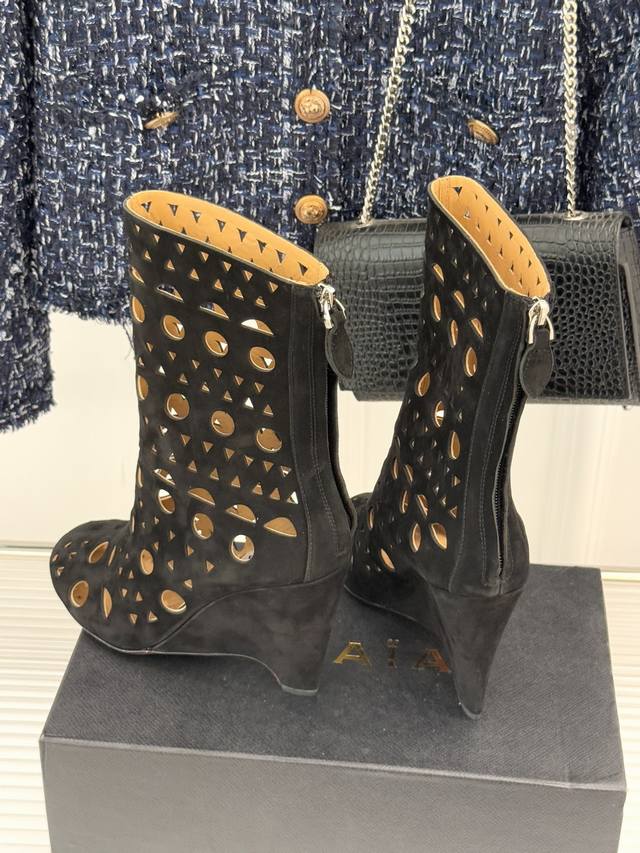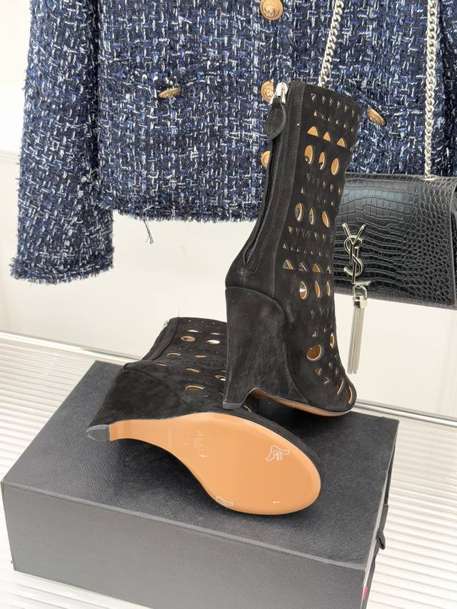 Alaia 25Wf New Hollow-Out High-Heeled Ankle Boots