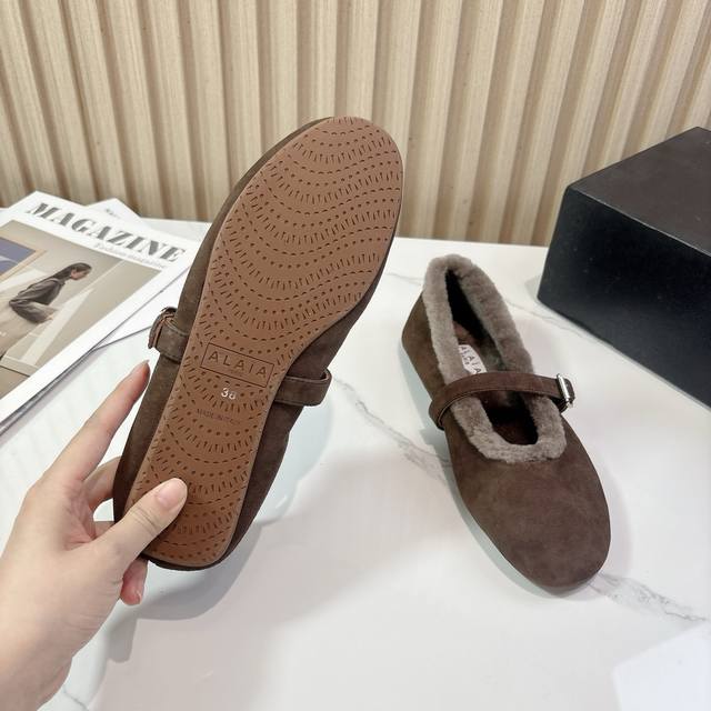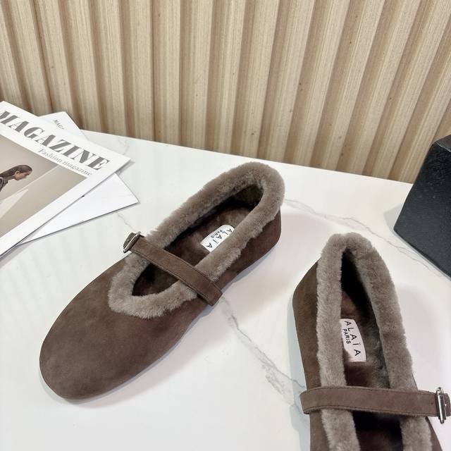 Alaia | Alaia's new 25Wf furry Mary Jane shoes. When the biting cold wind announces the arrival of winter, a pair of warm and stylish shoes becomes a fashionista's dream. These furry shoes are a must-have this season. Crafted from premium fur, the upper feels soft and delicate, making every step feel like stepping on a warm blanket, bringing warmth even on cold winter days. The furry texture not only provides warmth but also adds a fluffy touch that's irresistible. The classic Mary Jane silhouette exudes a vintage charm. The rounded toe is playful and youthful, perfectly flattering the foot, making it appear petite and delicate. Whether paired with a sweet dress or smart pants, they'll easily become the finishing touch.