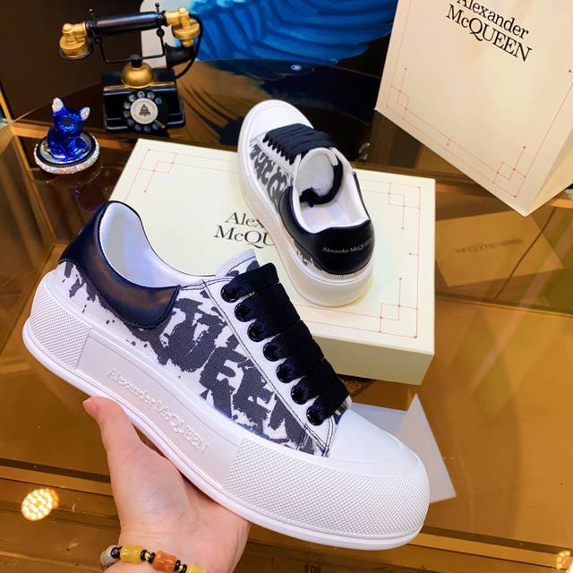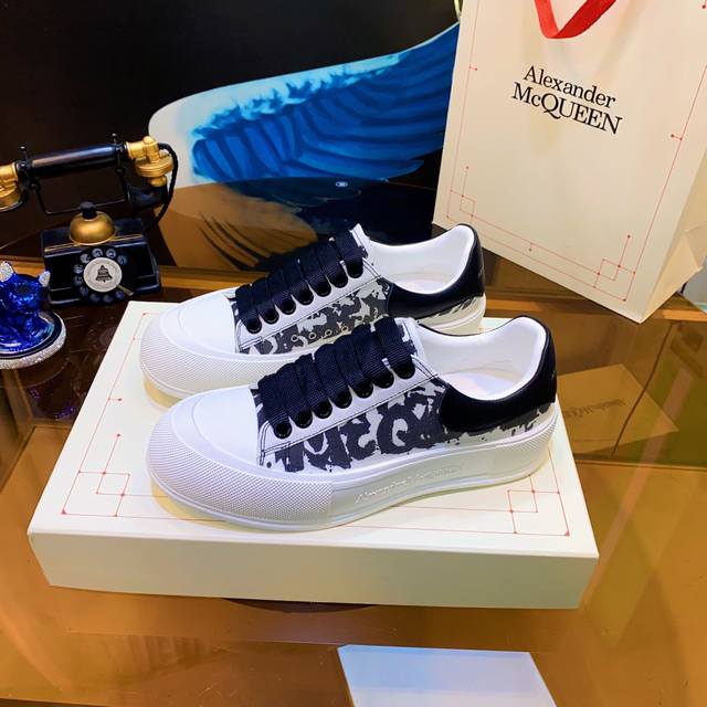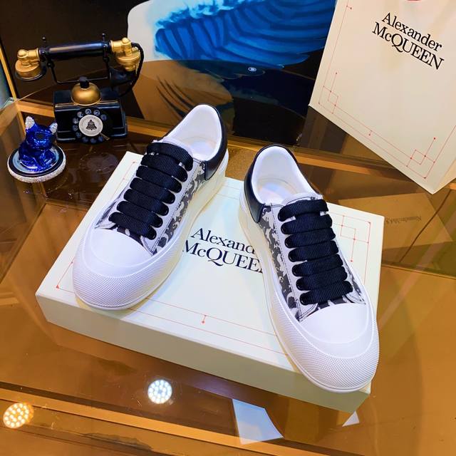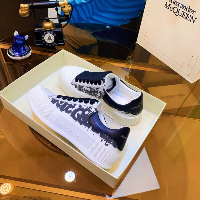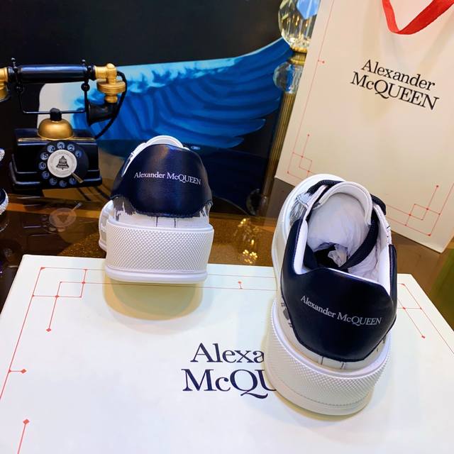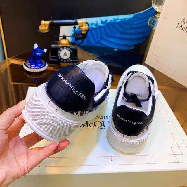 Alexander McQueen high-quality version upgraded again to the highest quality. Air cushion sole, color-changing heavy craftsmanship. McQueen spring/summer/autumn/winter top-tier import version. Fabric: High-quality imported Italian leather, water-resistant and colorfast, silk cowhide. Lining: Grade 1A Italian water-dyed sheepskin lining, specially ordered, strong, dirt-resistant, sweat-absorbent, breathable, and comfortable. Stepping: Top-tier imported Italian super-soft cowhide lining. Sole: PU + 1:1 replica rubber outsole. Package: Original beige shoe box, cloth bag, certificate of conformity, 1:1 molded 4-piece set, shoelaces, and tote bag. Size: Women's 34-41, Men's 38-46. Price: Top-tier version