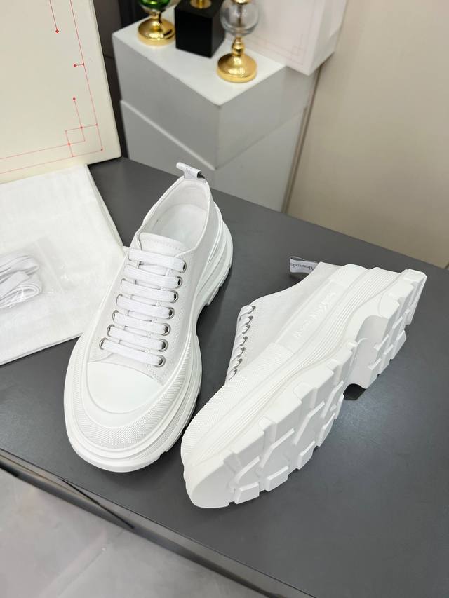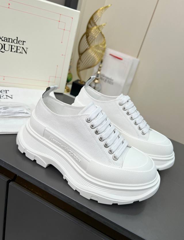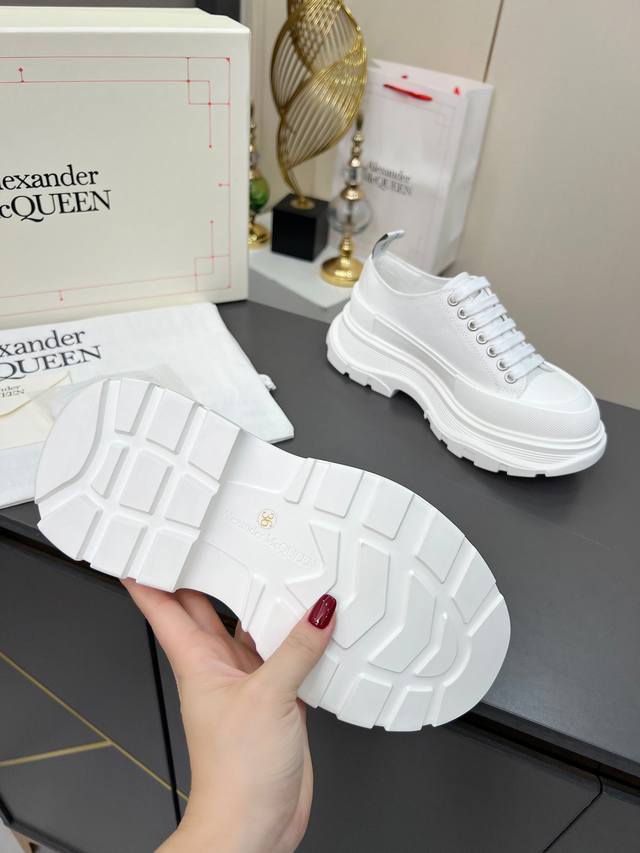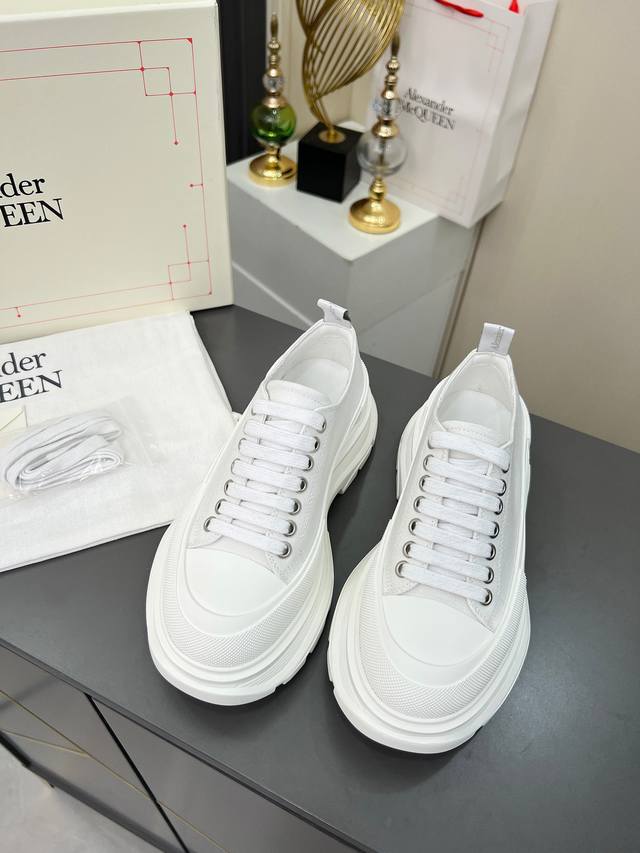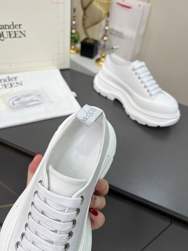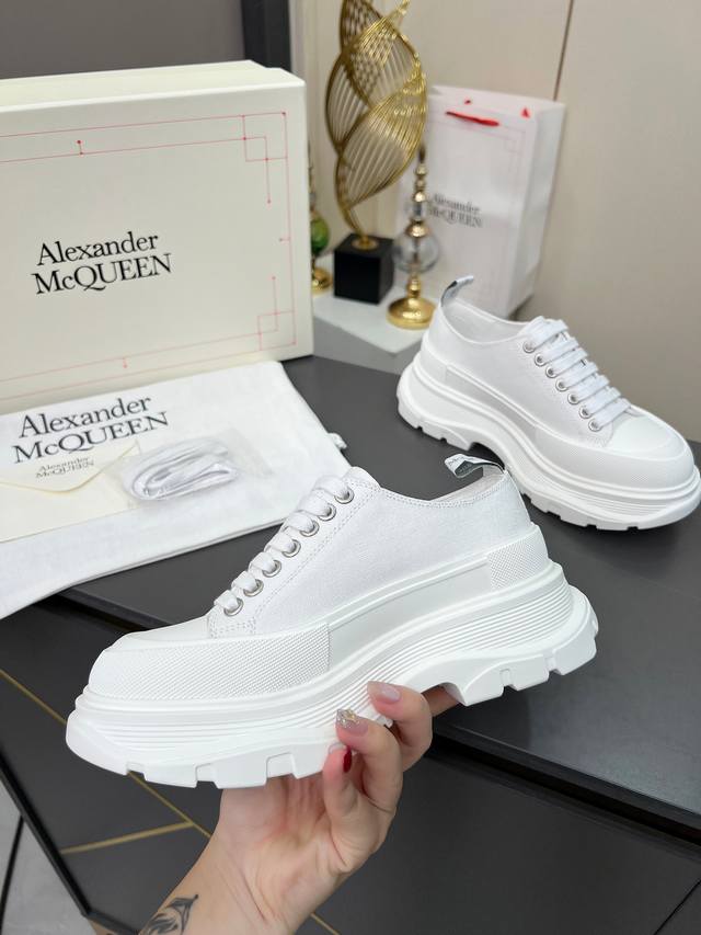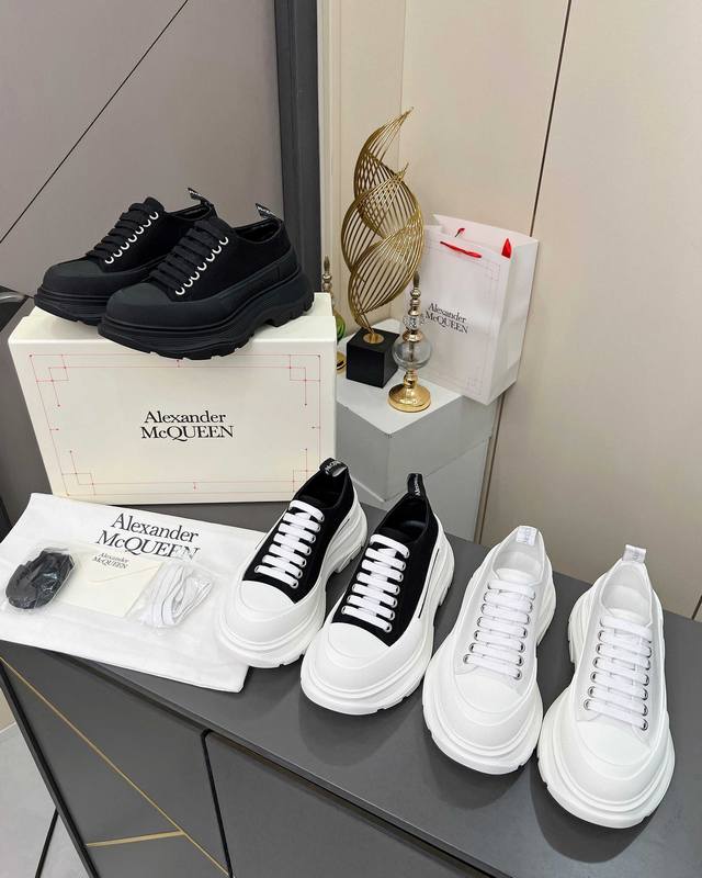 Alexander McQueen Lace-up Round Toe Low-top Shell Toe Casual Shoes, Couple Shoes, Milan Fashion Week Runway Style. A must-have for fashionable ladies! The shoes' unique personality adds undeniable charm, making them incredibly stylish on the feet. The shell toe design allows for complete toe freedom. A high-quality replica, sourced directly from the original. A super popular item, with boutique quality! Material: Original canvas; Lining: Sheepskin lining; Insole: Removable sheepskin latex insole; Outsole: Original molded, vacuum-sealed outsole; Sizes: Women's 35-40, factory price (Price not available); Men's 39-44, factory price (Price not available).