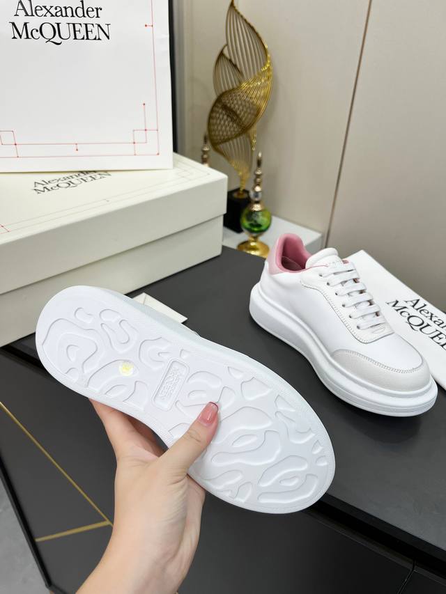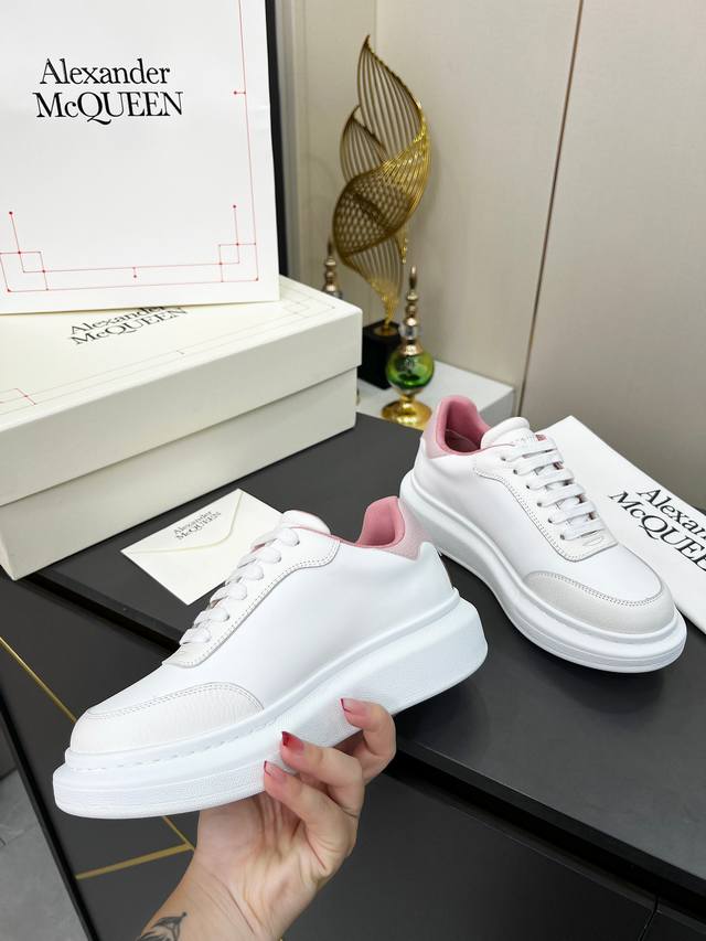 Alexander McQueen Leather Lace-up Round Toe Low-top Casual Shoes for Couples! A 2025 Milan Fashion Week runway piece, featuring a unique and stylish design that looks incredibly fashionable. The round toe design allows for complete toe freedom. We went all out, purchasing multiple original pairs and disassembling them for this replica. A super popular item, with boutique quality! Material: Top-grain cowhide. Sizes: Women's 35-40, Factory Price (P). Men's 39-44, Factory Price (P).