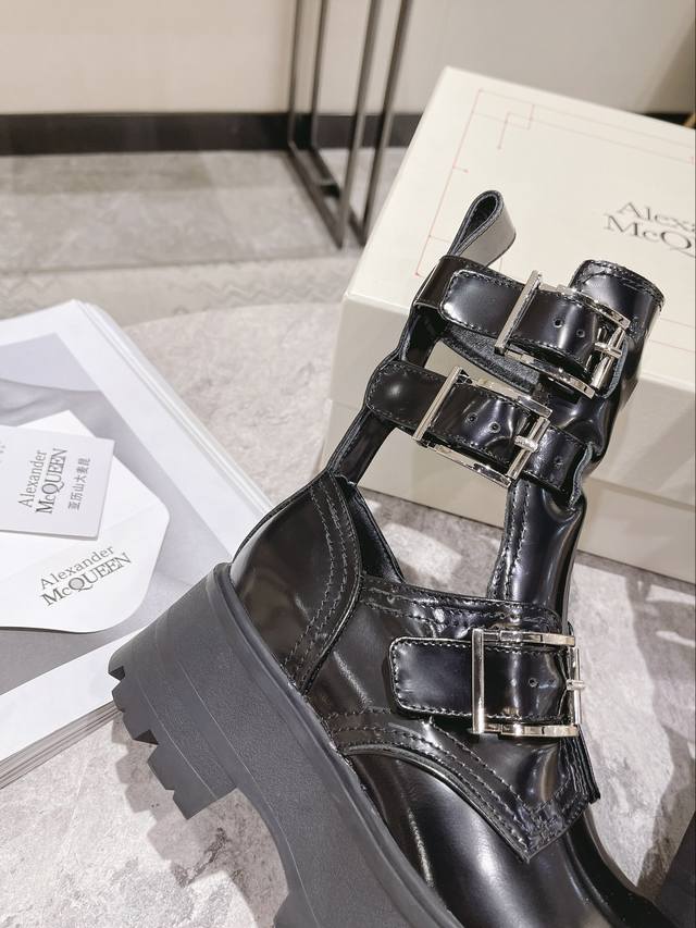 alexander Mcqueen McQueen early autumn catwalk style ancient Roman shoes hollow sandals