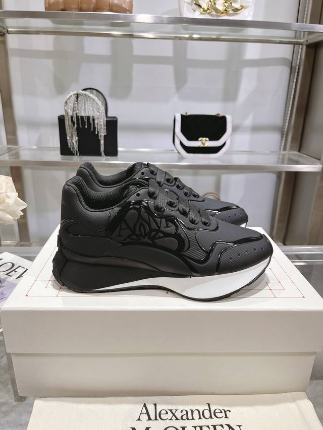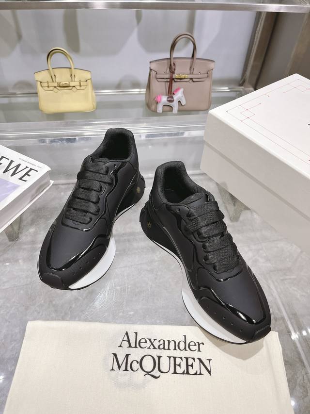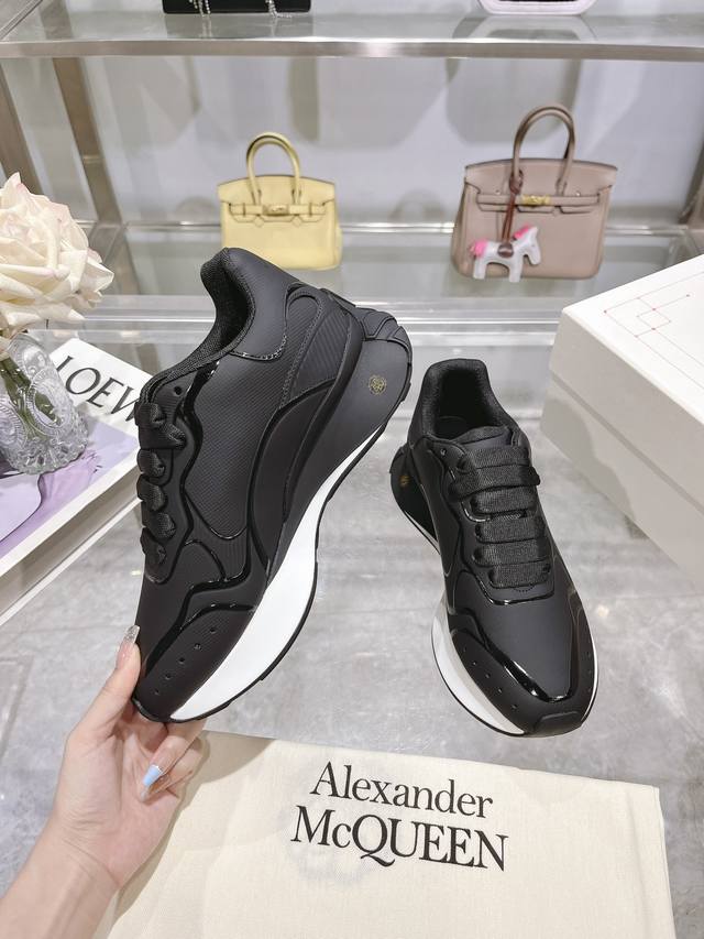 Alexander McQueen Spring/Summer Men's Sprint Sports Couple's Shoes. Stylish and personalized Seal Logo on the side. Full leather embossing. Cowhide lining for the sole. Non-delaminating and non-fading. The latest exquisite full set packaging comes with a pair of laces. Men's size 39-45