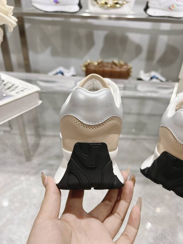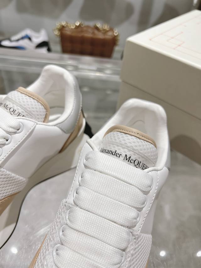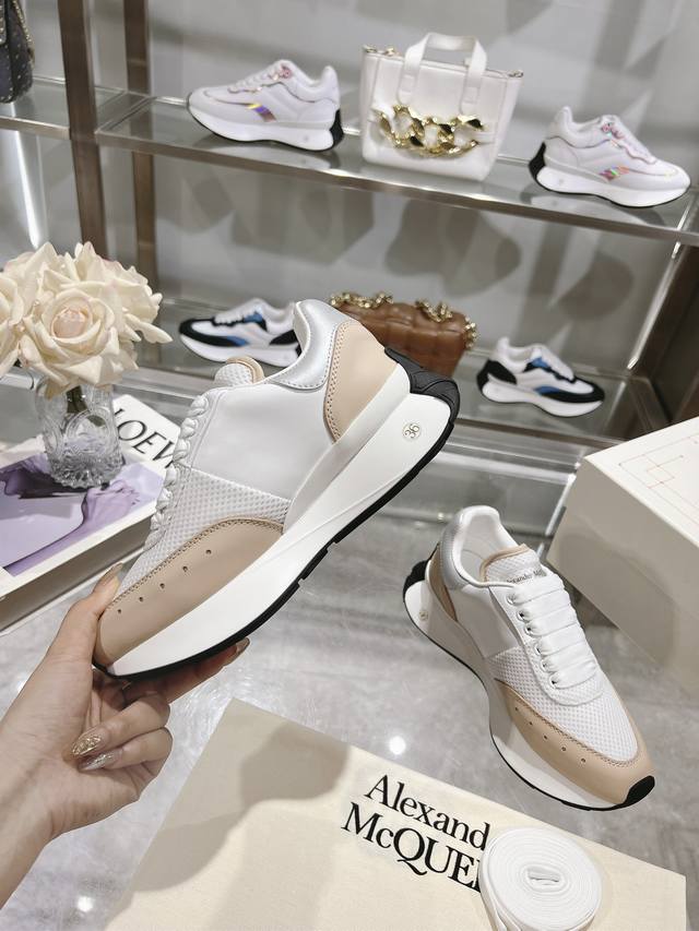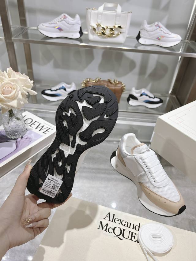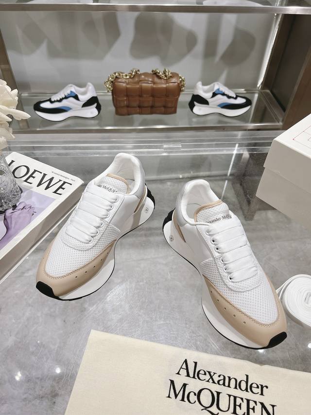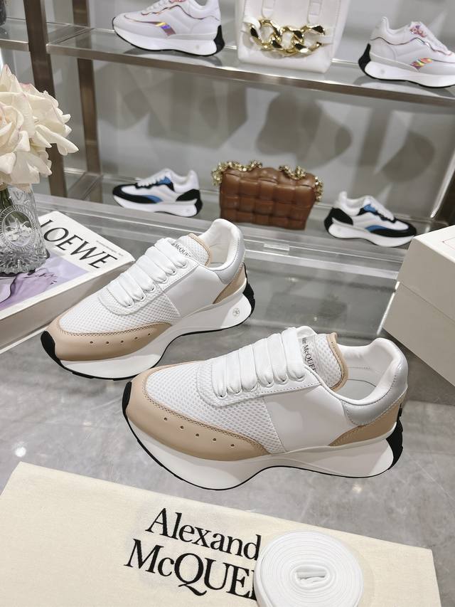 Alexander McQueen Spring/Summer Men's Sprint Sports Couple's Shoes. Stylish and personalized letter Seal Logo on the side. Full leather and mesh surface. High-quality oiled edge craftsmanship. Sheepskin and cowhide lining. Non-delamination and fading. The latest exquisite full set packaging comes with a pair of shoelaces. Women's 35-40, Men's 39-45