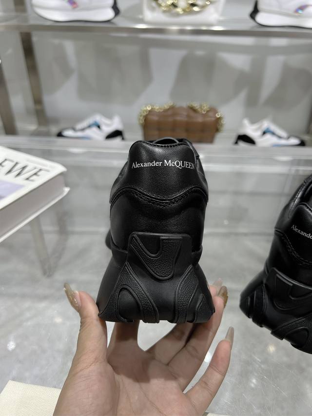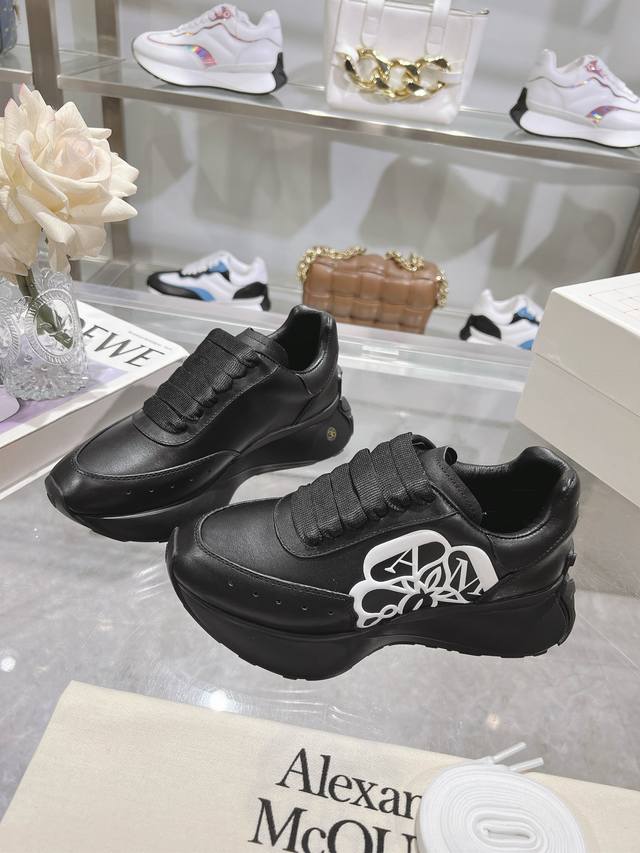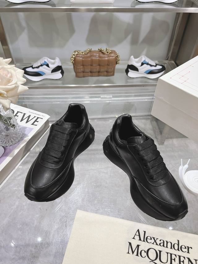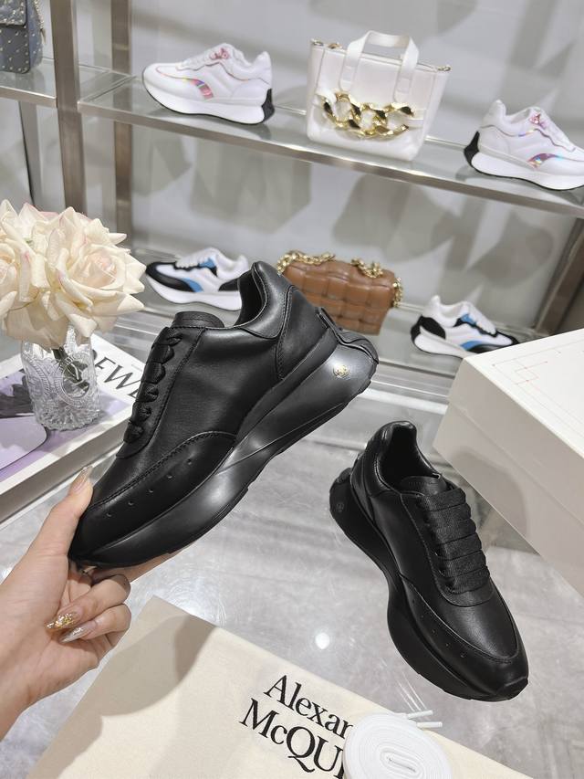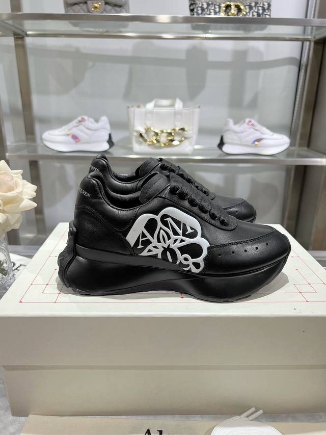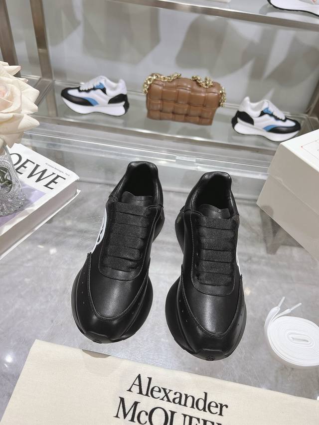 Alexander McQueen Spring/Summer Men's Sprint Sports Couple's Shoes. Stylish and personalized letter Seal Logo on the side. Full leather embossed and oiled edge craftsmanship. Sheepskin lining and cowhide footbed. Non-delamination and non-fading. The latest exquisite full set packaging comes with a pair of shoelaces. Women's 35-40, Men's 39-45