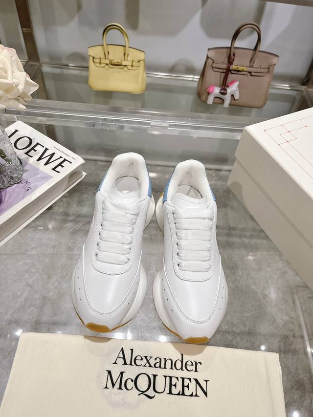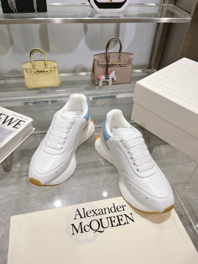 Alexander McQueen Spring/Summer Men's Sprint Sports Couple's Shoes. Stylish and personalized letter Seal Logo on the side. Cowhide leather lining for the foot, non-delamination and non-fading. The latest exquisite full set packaging also includes a pair of shoelaces 35-45