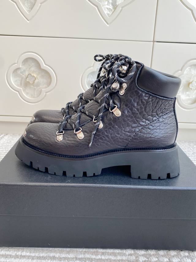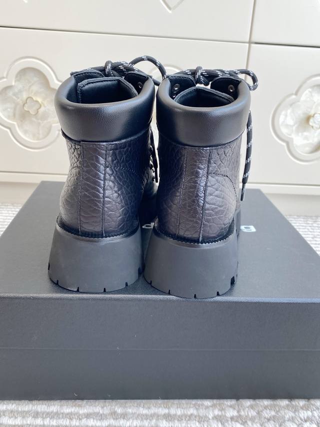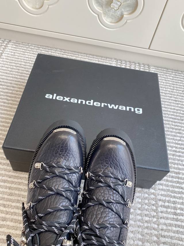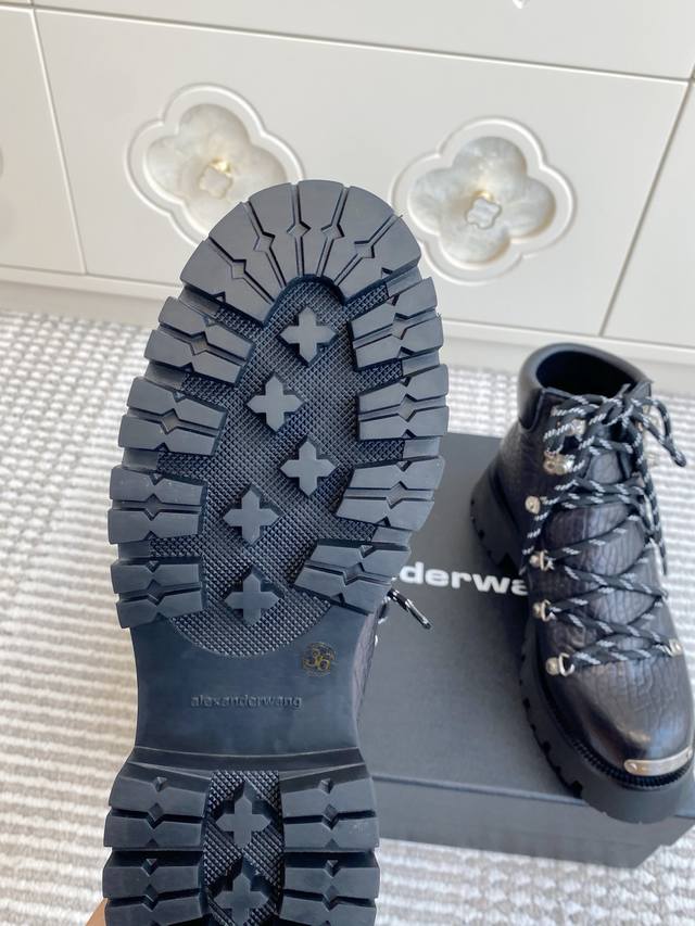 ) These Alexander Wang platform ankle boots are an absolute must-have for those with great legs! They make you look taller and slimmer, and the classic black color is incredibly versatile. The leather upper features a laser-engraved logo, and the lace-up design combined with the 7cm platform sole easily creates the illusion of longer legs! Upper: Original cowhide; Lining: Sheepskin; Outsole: Original rubber; Sole thickness: 7cm; Size: #35-39, 40, 41. Custom orders are non-refundable and non-exchangeable.