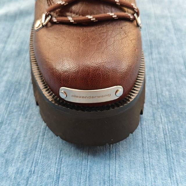 Alexander Wang's New Style Loafers, Retro Lace-up Ankle Boots, Martin Boots DDD Metal eyelets paired with the iconic brand logo, platform design for effortlessly long legs~ Perfect for autumn and winter, stylish and sophisticated for commuting and casual wear DDD Upper: Original imported cowhide DDD Lining: Imported sheepskin DDD Outsole: Original molded rubber foam outsole DDD Heel height: 4.5cm DDD Sizes: 35-39 Size 40 (Custom orders are non-refundable and non-exchangeable) DDD Factory price (pp.): DDD