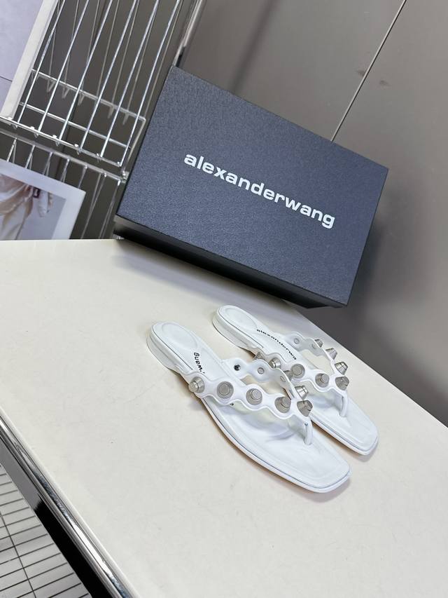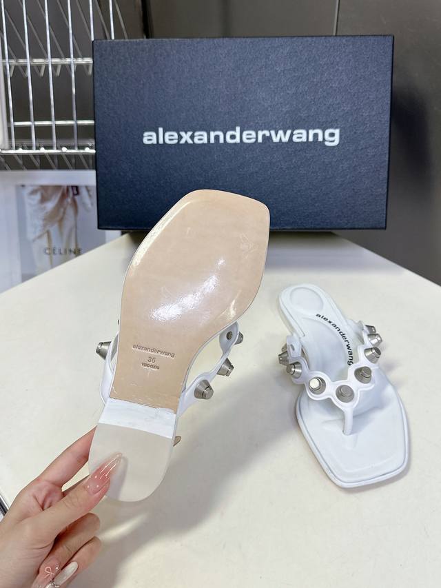 Alexanderwang Alexander Wang Spring/Summer Latest Edition Handcrafted Nail-Studded Slippers. Bold And Edgy, Ultra-Luxurious. This Minimalist Design Is Fashionable And Comfortable To Wear, A Must-Have For Summer. Alexander Wang Presents A Refreshed Iconic Silhouette.