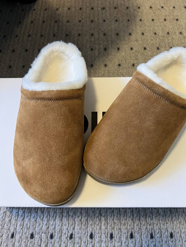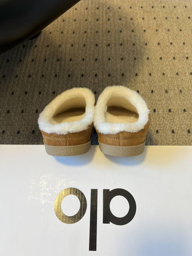 The upper is made of high-quality suede material, with a delicate touch and a retro feel. The opening is wrapped with fluffy and soft plush, which not only looks warm and comforting, but also provides a cloud-like comfortable fit when it fits the foot. The overall appearance is simple and generous, without any unnecessary complicated design. Whether you wear it at home to enjoy lazy moments or pair it with casual clothes to go out, it can be easily matched to create a casual yet stylish style for you.