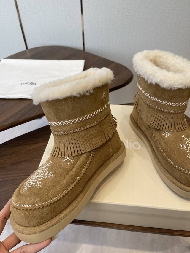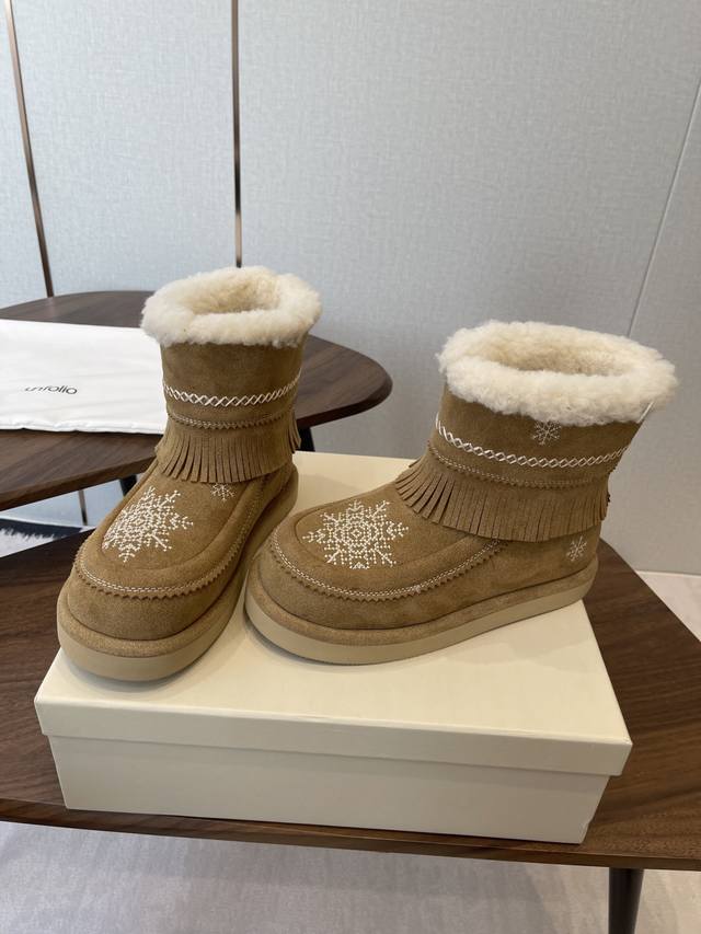 Ankle Boots & High Boots DDD Snow Boots Main Style Easy to Match Unfolio Premium High-Gloss Calfskin Leather DDD Tassel Design Tens of Thousands of Stitches Embroidered Snowflake Pattern Wool Lining Niche Designer 25th Launch New Release DDD Fabric Made of High-Gloss Calfskin Leather Comfortable Wool Lining DDD Original Recyclable Material Slim Waist Streamlined Rubber Outsole DDD Size: 35-41 40 41 Custom Made, No Returns or Exchanges DDD