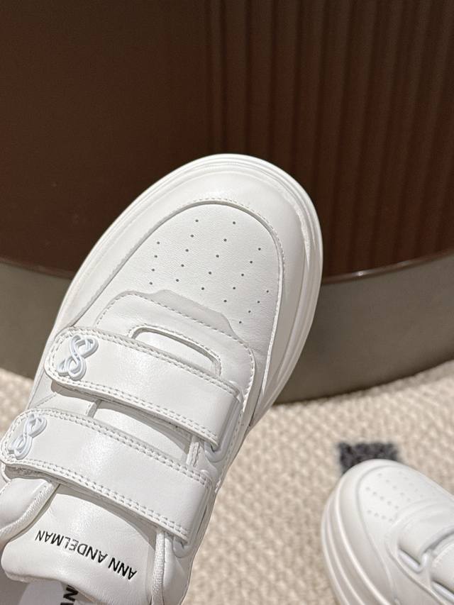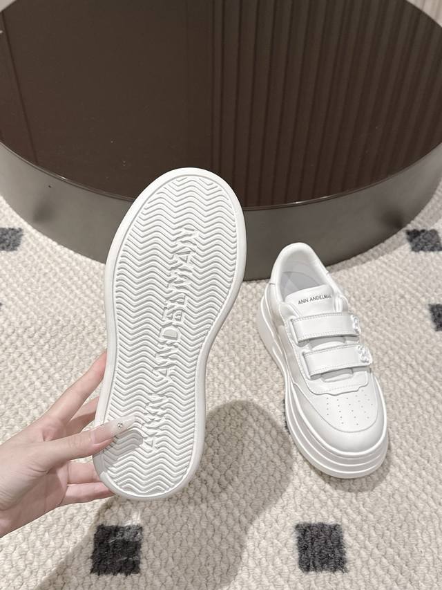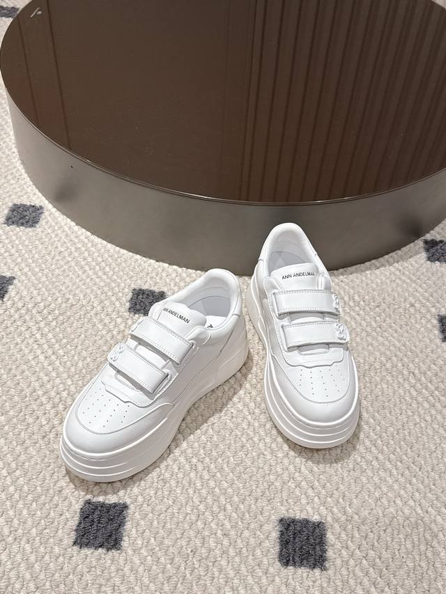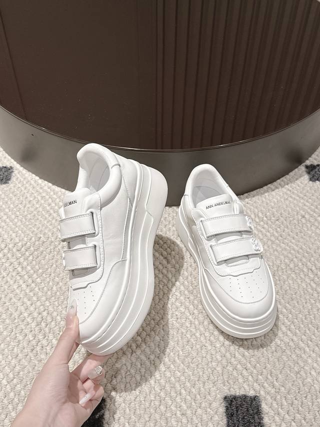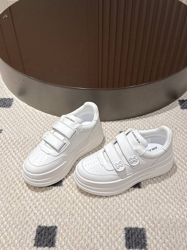 ann Andelman's 2025 Velcro White Sneakers 2.0 are here! Say goodbye to the tedious lacing process! Simply lace them up and you're out the door! They're a lifesaver for busy mornings, making every outing more efficient and effortless. The 6cm thick sole is a boon for petite women, quietly lengthening your legs and instantly adding a 6-foot-30 presence. Available in classic black and white, as well as an eye-catching silver version, they're simple yet stylish. Whether paired with a vibrant sporty outfit or a casual, relaxed look, they're firmly at the forefront of fashion! Available in sizes 35-40. #Annandelman #VelcroWhiteShoes #2025New #FashionHeightIncreasingShoes