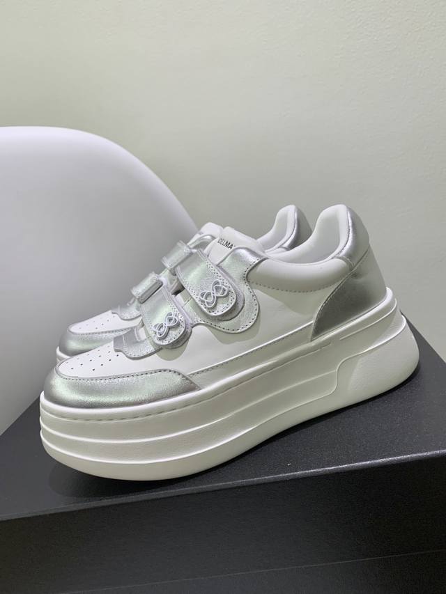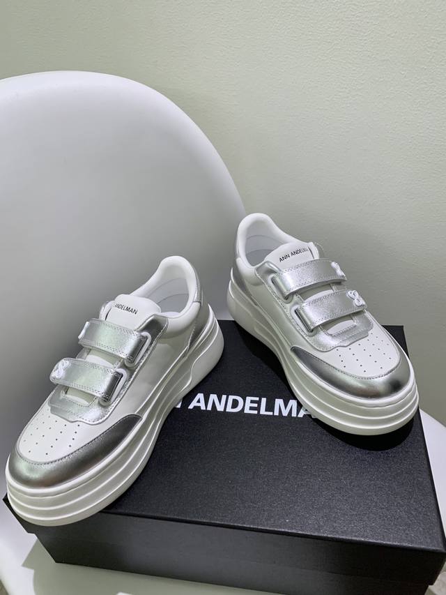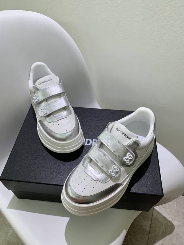 Ann Andelman's 2025 Velcro White Sneakers 2.0 are here! Say goodbye to the tedious lacing process! Simply lace them up and you're out the door! They're a lifesaver for busy mornings, making every outing more efficient and effortless. The 6cm thick sole is a boon for petite women, quietly lengthening your legs and instantly elevating your presence. Available in classic black and white, as well as an eye-catching silver version, they're simple yet stylish. Whether paired with a vibrant sporty outfit or a casual, relaxed look, they're sure to stay firmly at the forefront of fashion! Sizes: 35 40