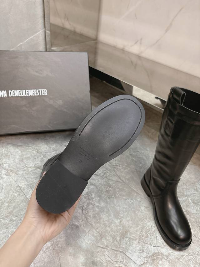 Ann Demeulemeester 2025 Autumn/Winter New Retro Riding Boots. How can a trendy girl be without a pair of stylish and rugged riding boots this winter? They may seem ordinary at first glance, but they're actually incredibly versatile and sophisticated, both cool and chic, and they make your legs look super long. A must-have for showing off your legs in winter! Made with high-gloss suede cowhide leather, sheepskin lining, and original mold sole. Sizes: 35-39# 40# Made to order, no returns or exchanges.