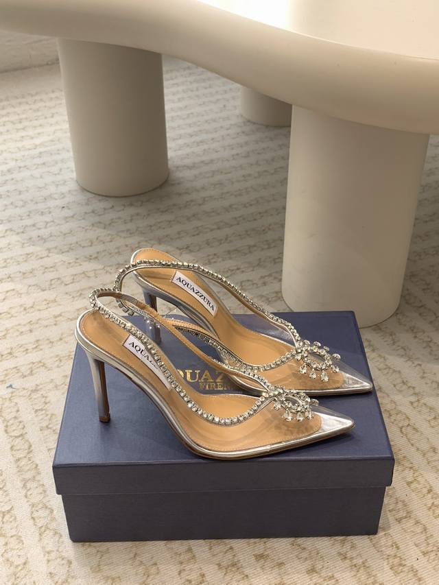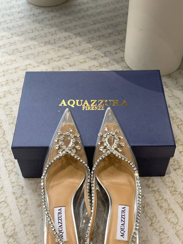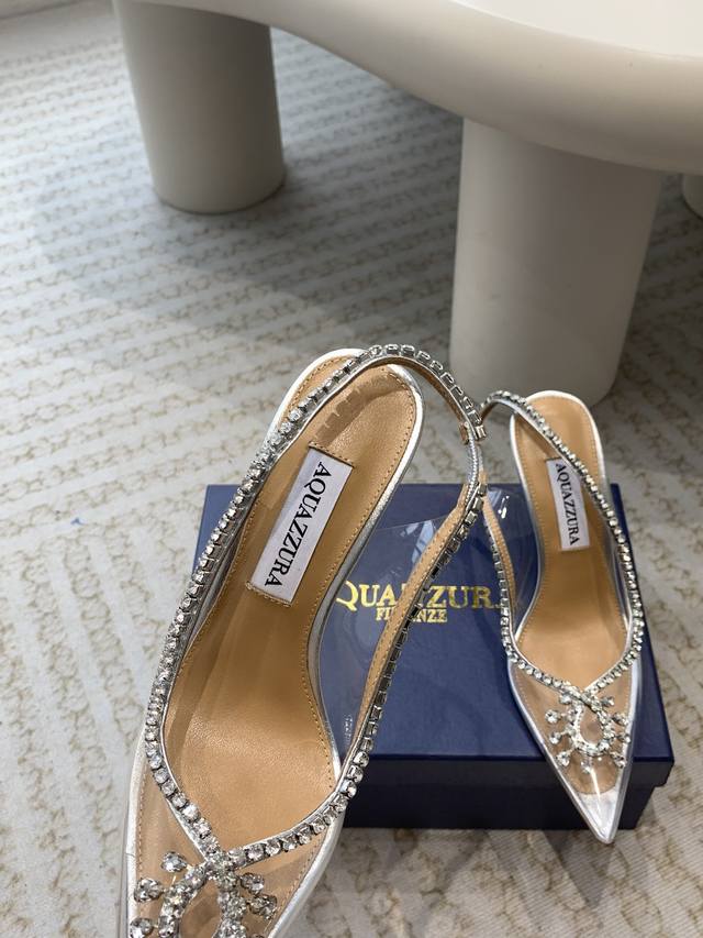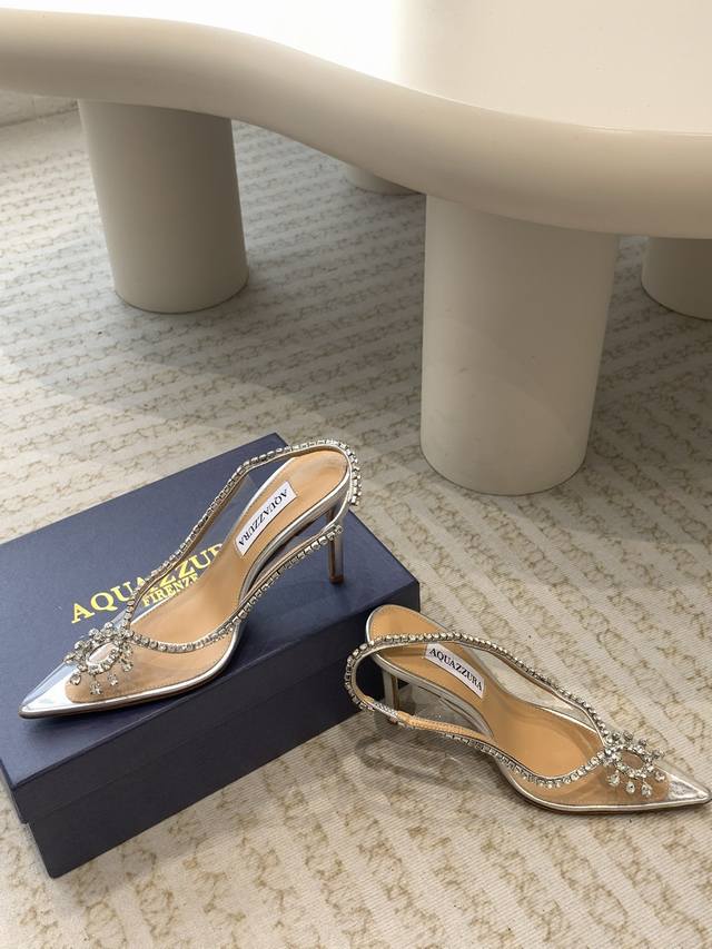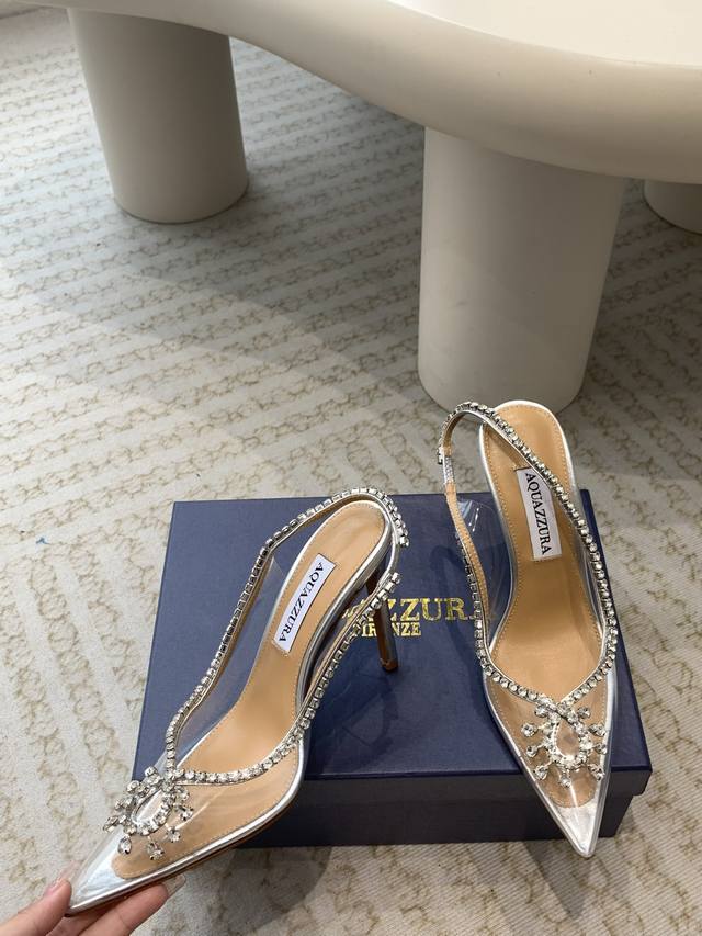 Aquazzura 24Ss Stunning hot style, the favorite of pineapple royal aristocrats. Elegant and graceful, with elegant temperament, and picture cabinet-level quality. Imported PVC film with dazzling and unique rhinestone buckle, lambskin lining, Italian genuine A-grade leather outsole. Heel height: flat 7.5cm 10cm