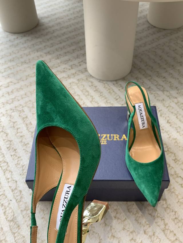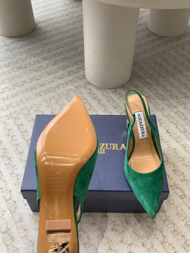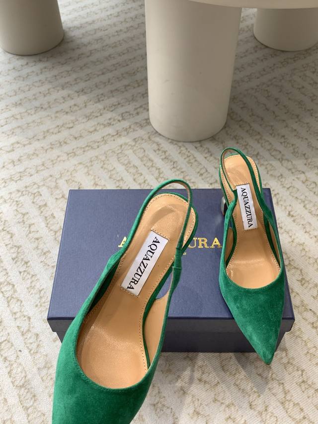 Aquazzura 24Ss Stunning hot style, the favorite of pineapple royal aristocrats. Elegant and graceful, with picture cabinet-level quality. Fabric: imported suede, imported Glitter special material lambskin lining, Italian genuine A-grade leather outsole . Heel height: 8.5cm. Size: #34-42. 34, 40, 41, 42. Custom-made and non-refundable.