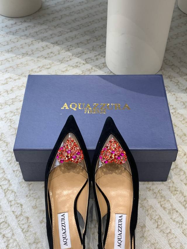Aquazzura 24Ss Stunning hot style, the favorite of pineapple royal aristocrats. Elegant and graceful, with elegant temperament, and picture-level quality. Imported sheepskin and silk, dazzling and unique rhinestone buckle, lambskin lining, Italian genuine A-grade leather outsole. Heel height: 5cm 10cm