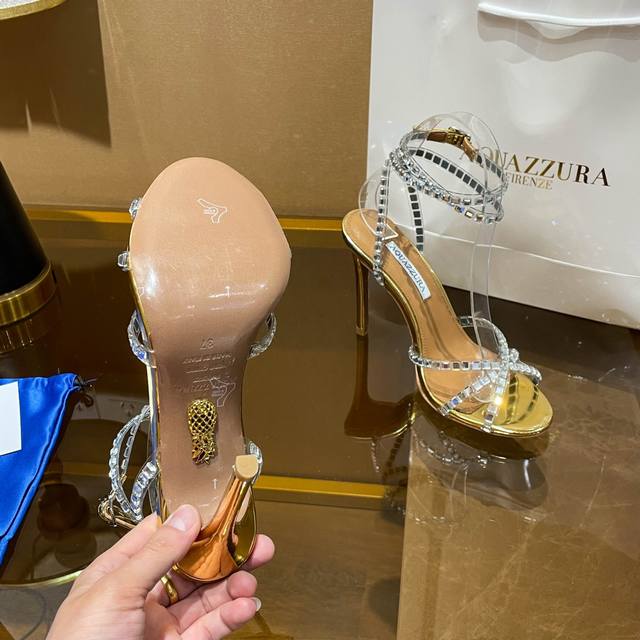| Lailai Pineapple's new spring/summer high-heeled sandals. With a silk-wrapped midsole and a rhinestone-studded upper, this ultra-sparkling, sophisticated must-have is so sexy! A truly stylish statement piece. The