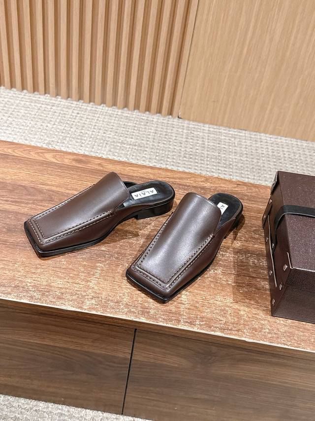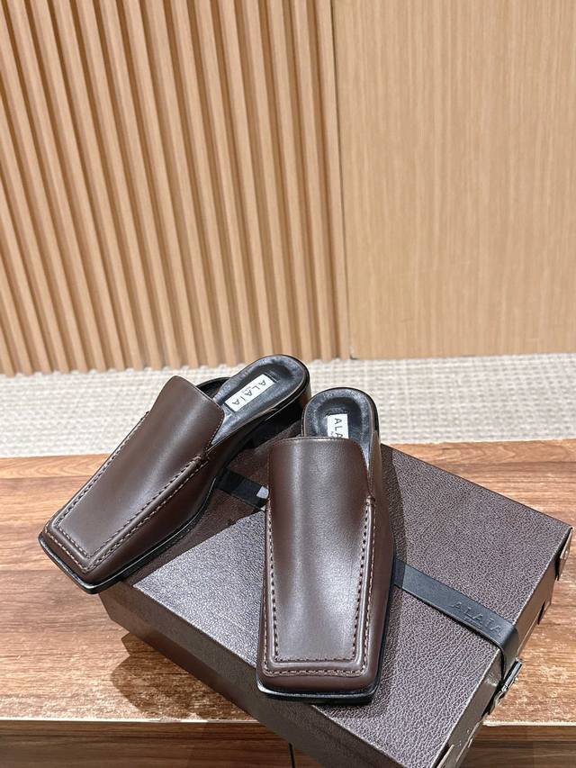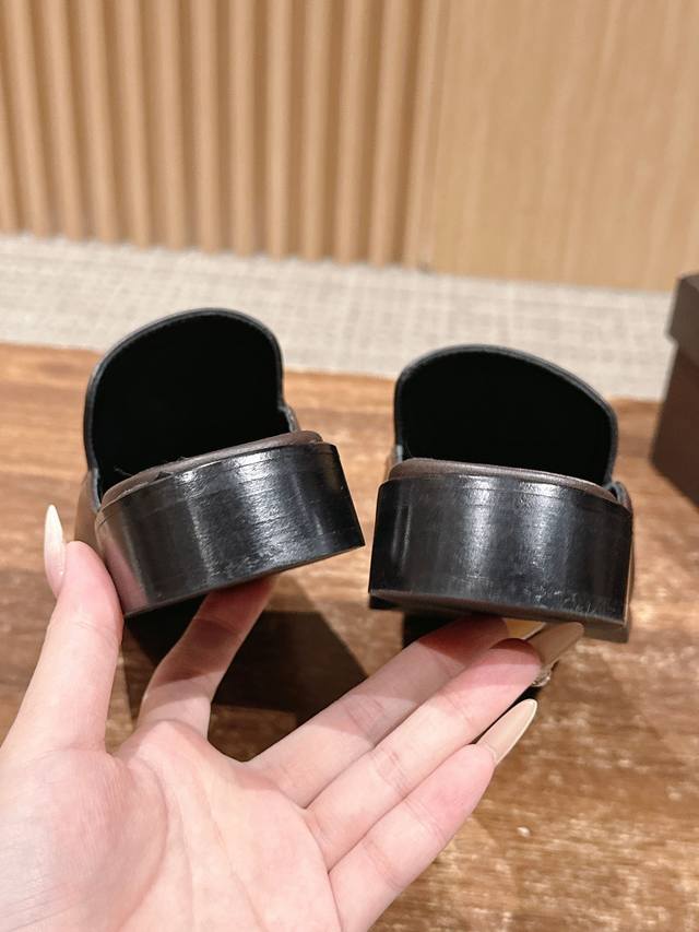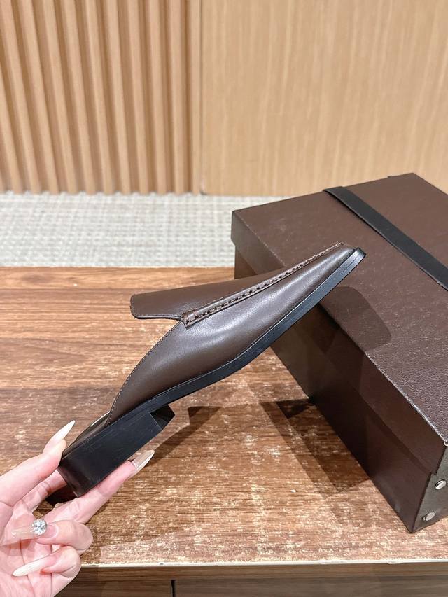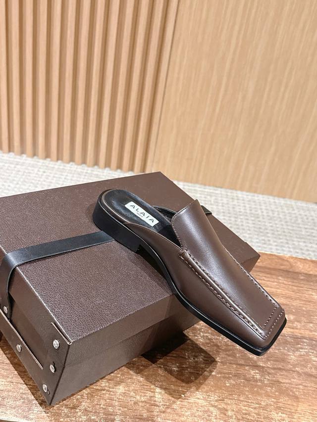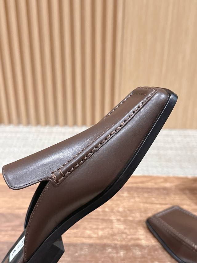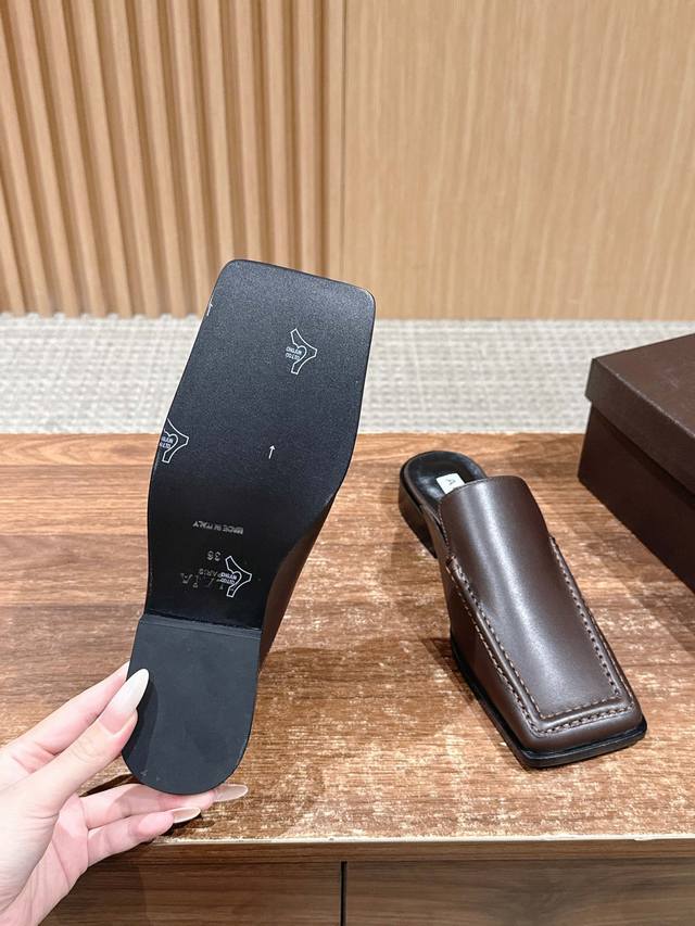 Area's New British Style Square-Toe Mule Slippers DDD Featuring the iconic square toe, the shoe body is devoid of excessive embellishment, with only visible stitching on the upper adding detail, embodying a "simple yet recognizable" style. The outer layer is made of glossy calfskin, with a lambskin lining inside, and the sole is a combination of leather and rubber, resulting in a luxurious overall look. DDD These are slip-on loafers, easy to put on and take off, while the Italian handcrafted craftsmanship ensures a snug fit. The images show two colors: dark brown and black, both versatile and sophisticated colors suitable for various occasions such as commuting and leisure. DDD Upper: Cowhide DDD Lining: Cowhide DDD Outsole: Italian genuine leather DDD Height Increase: 2.5cm DDD Size: 35-40, size 40 is custom-made and non-refundable DDD