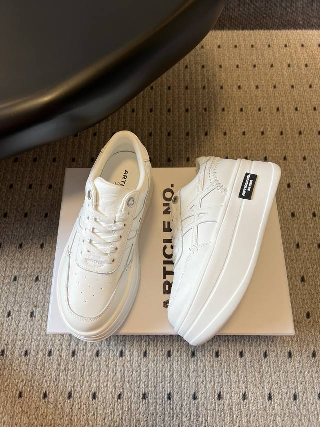 Article N* Platform Sneakers, White Sneakers, Casual Shoes DDD Rooted in West Coast skateboarding culture, these shoes blend retro elements with modern street style, emphasizing a simple and understated design. The upper is made of genuine leather and incorporates environmentally friendly materials, balancing texture and sustainability. The platform sole uses a lightweight rubber compound to reduce the feeling of weight while improving slip resistance and durability. Available in two classic colorways: pure white and black and white panda colorway. The low-top silhouette is suitable for various occasions. The 5cm platform sole provides a built-in height increase, while the breathable upper and soft, elastic insole enhance comfort. The brand logo on the side is subtle yet highly recognizable. DDD Upper: Cowhide Ddd Lining: Sheepskin Ddd Outsole: Foam Outsole Ddd Height Increase: 5cm Ddd Size: 35-40, Size 40 is custom-made and non-refundable DDD