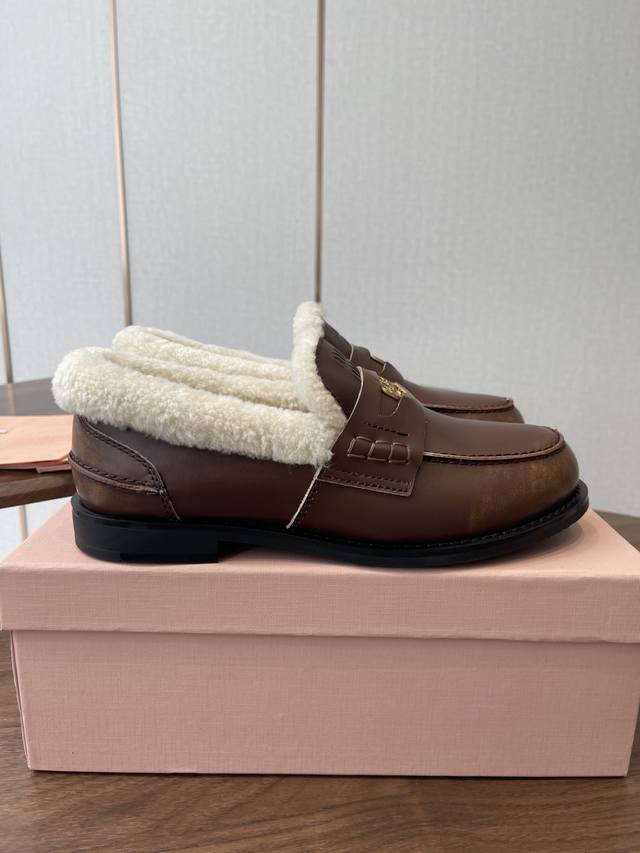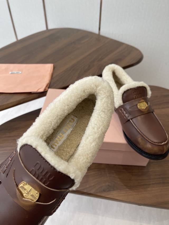 Autumn/Winter 25Ss Exclusive Hot Selling Miu Miu Gold Coin Wool Loafers DDD This season's Miu collection is absolutely amazing! The entire series is being released gradually. All original designs are sourced and developed DDD. Materials: Imported cow suede, imported split-edge beads, imported calfskin, wool lining, original exclusive mold, outsole DDD. Size: #35-40. Size 40 is custom-made and non-refundable DDD.