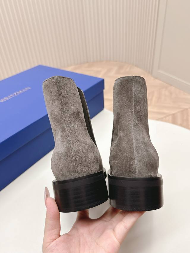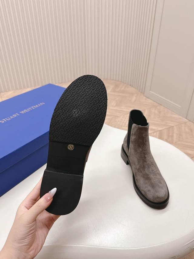 Autumn/Winter Suede Latest Classic Top-Tier Boots DDD Chunky Heel Thick Sole Chelsea Ankle Boots DDD Sw 5050 Soho Bootie Original Channel Goods Unstoppable! Featuring our popular Lift tire sole, these boots boast a bold and rugged design, showcasing fashionable charm. Lightweight and comfortable, they conform perfectly to the leg shape. DDD Upper: Calfskin with growth lines and pores smaller than any other leather, offering a baby-soft feel. The lining is made of mixed sheepskin. Original outsole, highly practical, lightweight, and soft. DDD Sizes: 35-40 [40 custom-made] DDD