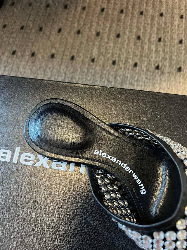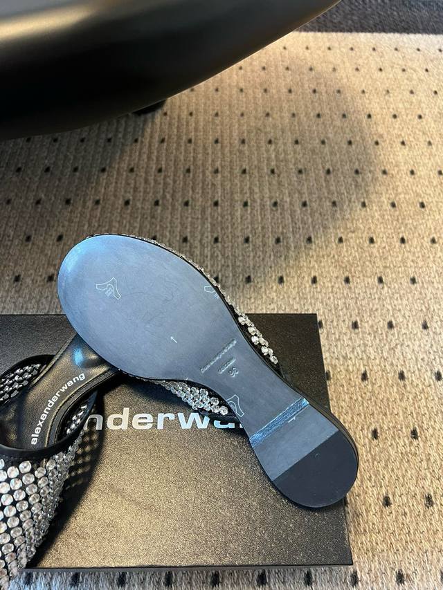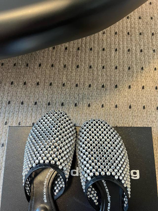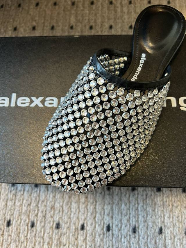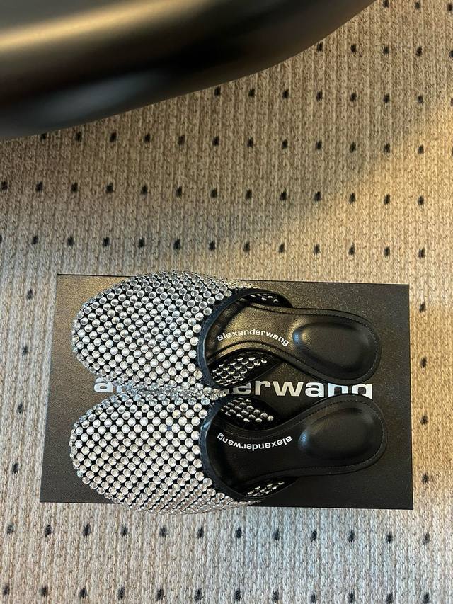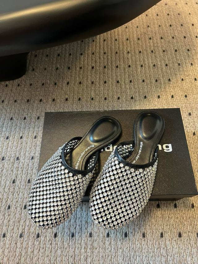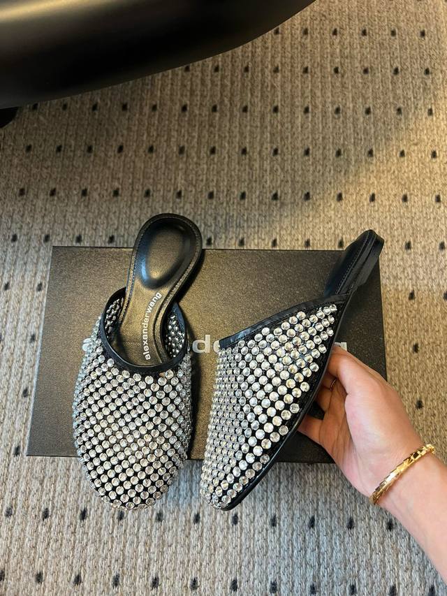 Alexander Wang 25Ss riveted, diamond-trimmed mesh closed-toe slippers. Love the sophisticated, sophisticated look! This minimalist design is stylish and comfortable for summer, a must-have for Wang, showcasing a fresh new look in its iconic silhouette. Made from soft leather, this shoe features a hollow heel with a hardware logo. Upper: Original cowhide with open mold and button studs. Lining: Sheepskin. Sole: Genuine Italian leather outsole. Sizes: 35, 40, 40. Made to order, no returns or exchanges.