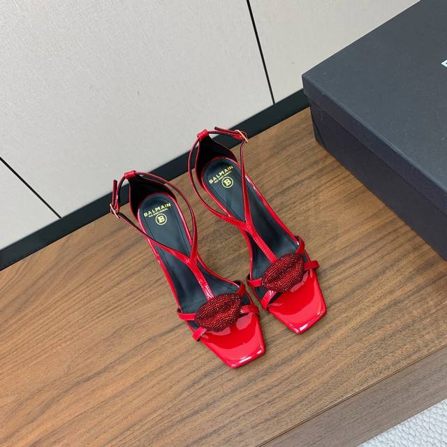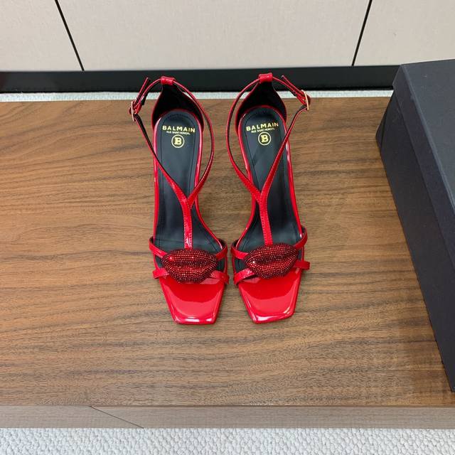 Bal*Ain Lip-shaped Rhinestone Buckle High-Heeled Sandals. Increasingly unique and outstanding, with an unbeatable aura and unbeatable beauty. Patent leather upper. Cowhide insole. Genuine leather outsole. Heel height 9.5cm. Sizes: 36-42. Sizes 40, 41, and 42 are custom-made and non-refundable. Wholesale: [List of sizes not provided]