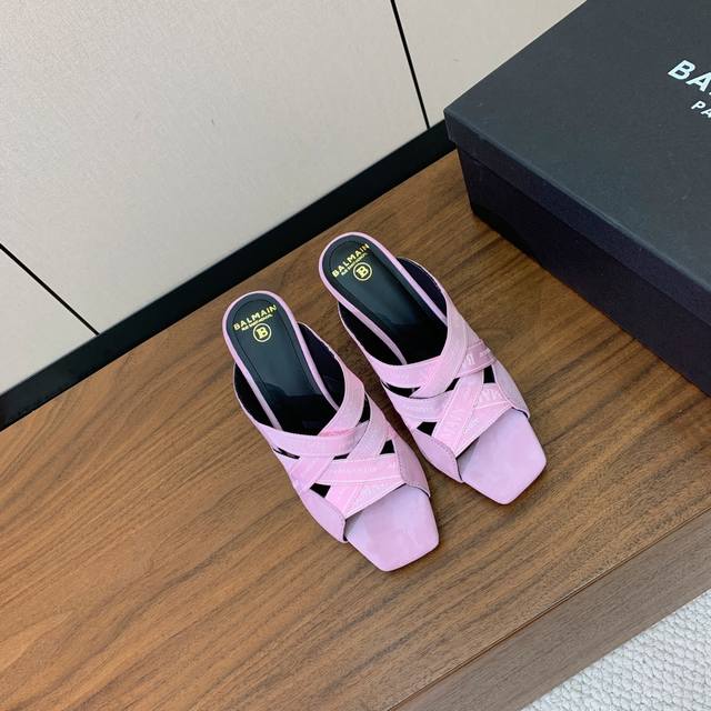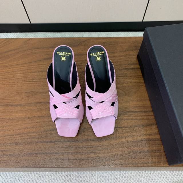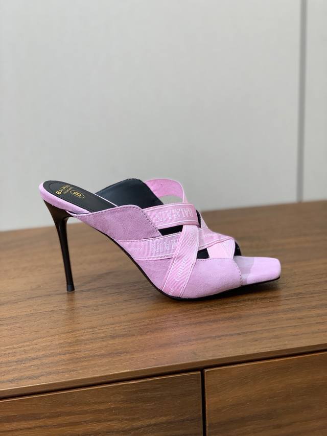 Bal*Ain Webbing High-Heeled Slippers. Increasingly unique and outstanding, with an unbeatable aura and unbeatable style. Material: Custom logo webbing on the upper. Cowhide lining, Italian genuine leather outsole, 9.5cm heel height. Sizes: 36-42. Sizes 40, 41, and 42 are custom-made and non-refundable. Wholesale: [List of sizes would be inserted here]