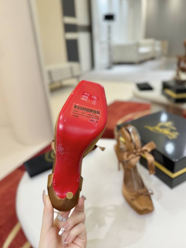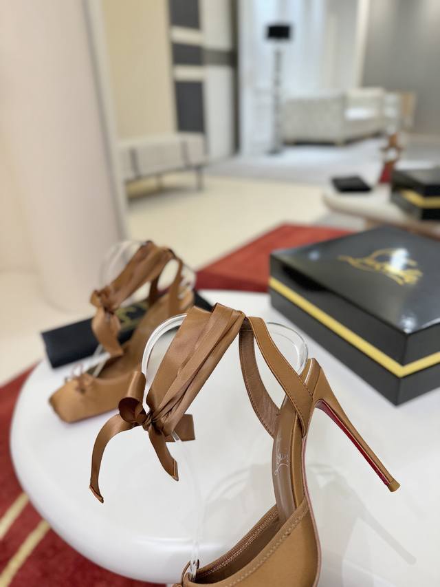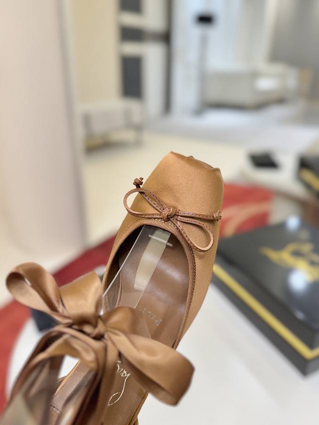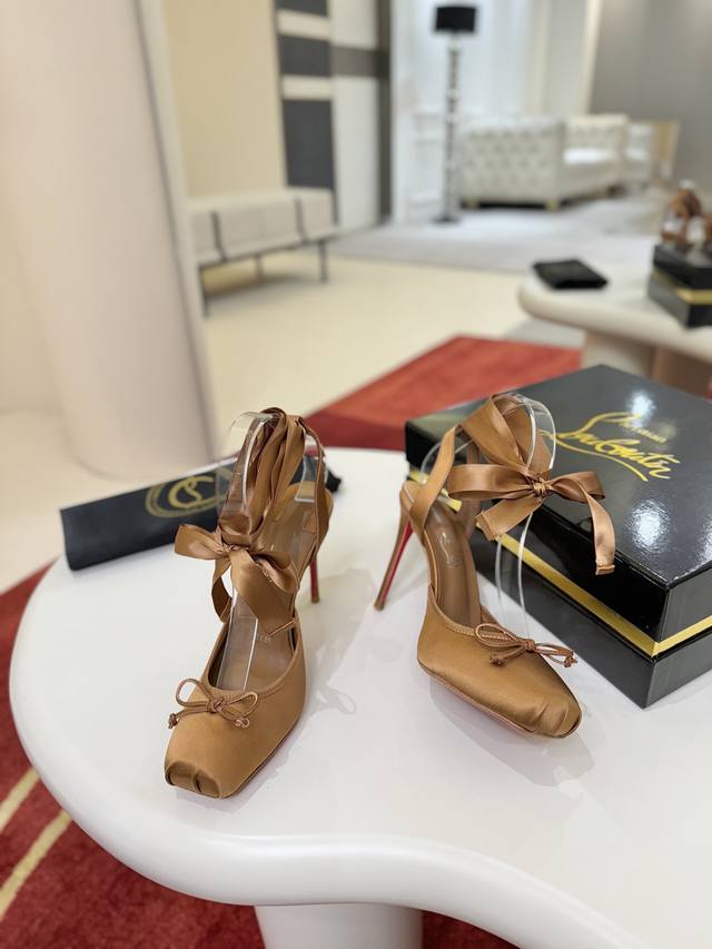 Ballet Flats W. DDD Cassia Lace Up heels are a testament to Christian Louboutin's "talent," featuring a square toe. Inspired by ballet flats, they are crafted entirely from black satin. Adorned with Grossgren embellishments, they sit atop a 100mm heel and are tied at the ankle with a ribbon. DDD Size: 35-43 DDD Sizes 40, 41, 42, and 43 are custom-made and non-refundable/non-exchangeable. Size 43 (size 10) DDD Color: Black Apricot Print DDD Outsole: Genuine Leather Outsole DDD Heel Height: 10cm DDD