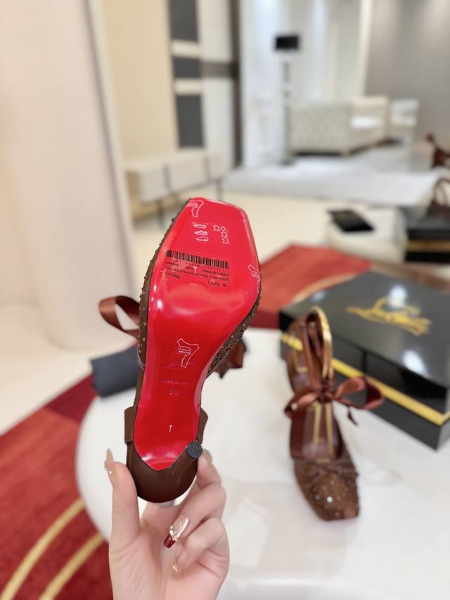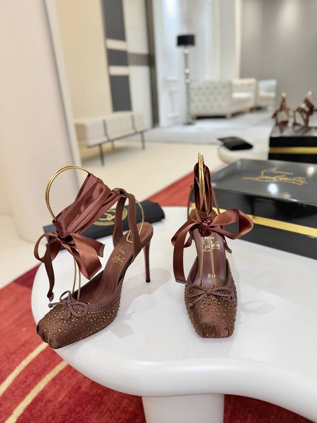 Ballet Shoes W. Ddd Ddd Cassia Lace Up high heels are a testament to Christian Louboutin's "talent," featuring a square toe. Inspired by ballet flats, they are crafted entirely from black satin. Adorned with Grossgren embellishments, they sit atop a 100mm heel and are tied at the ankle with a ribbon. Ddd Size: 35-43 Ddd 40, 41, 42, 43. Custom orders are non-refundable and non-exchangeable. Size 43, 10 Ddd Color: Black Apricot Brown Ddd Outsole: Genuine Leather Outsole Ddd Heel Height: 10cm DDD