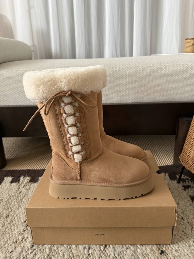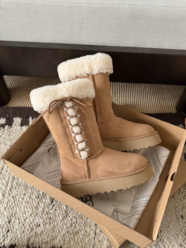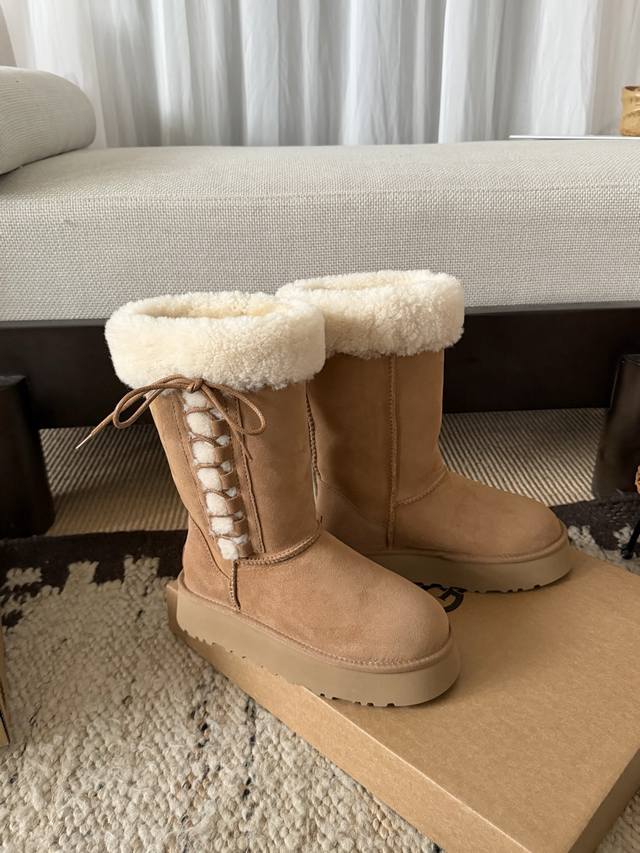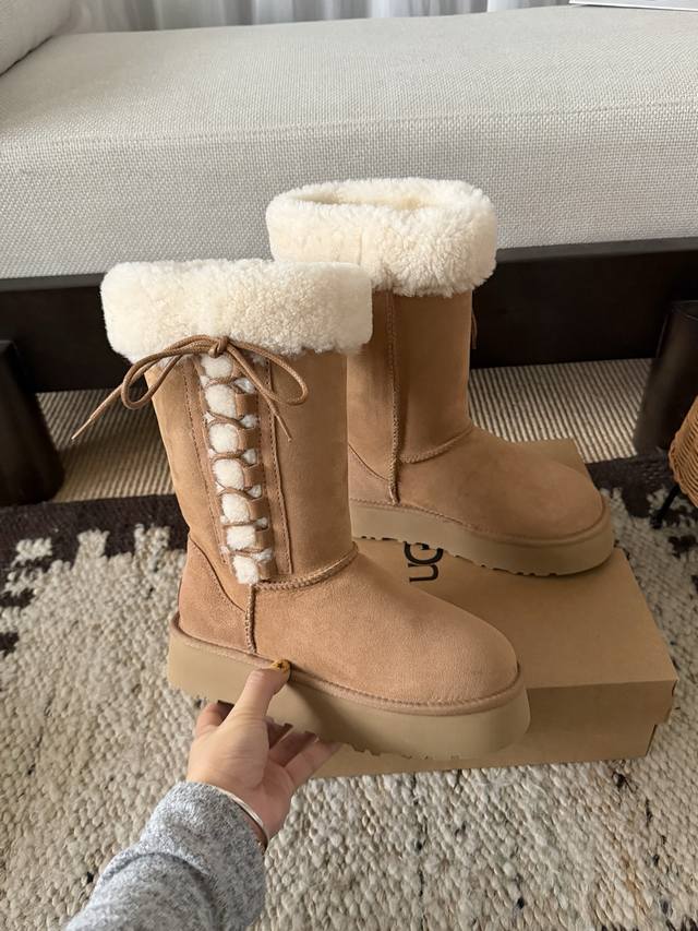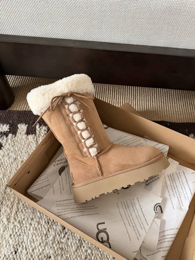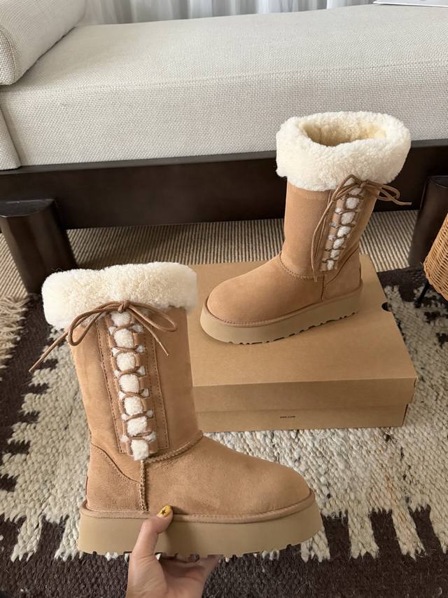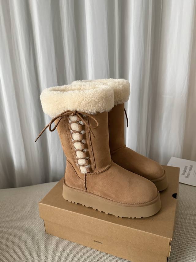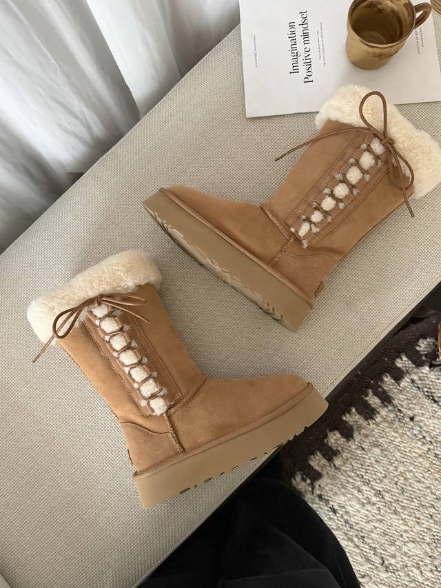Ballet-style lace-up platform boots, high-top style! Adorable teddy bear curls at the opening! High-top design for a slimming and leg-lengthening effect! Sheepskin shearling, a top choice for winter wear! Size: 35-40